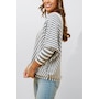 Crafted from ultra-soft fine-knit yarn, this quality sweater features three-quarter length sleeves and bold asymmetrical white stripes. Its design ensures a fit that is both chic and relaxed. You’re going to love it—it’s one of our most beloved styles!
