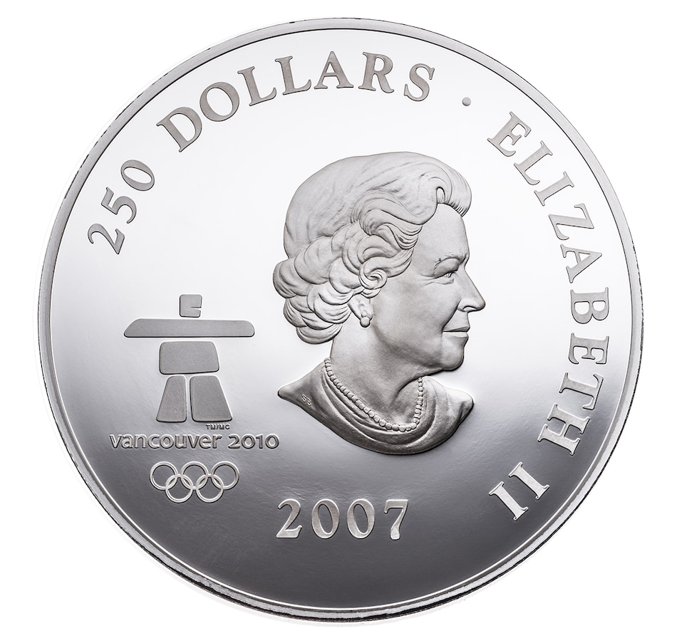 The front design is a combination of the first people who came to this land along with the wildlife, including a bear, moose, beaver, bison and wolf. The obverse features a portrait of Queen Elizabeth II next to the logo for the 2010 Olympics in Vancouver. Inscriptions include "Elizabeth II," along with the denomination and the year of mintage.