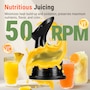Nutritious Juicing – The 50RPM slow speed preserves nutrients, vitamins, and enzymes while maintaining the fresh taste and vibrant color of your juice.