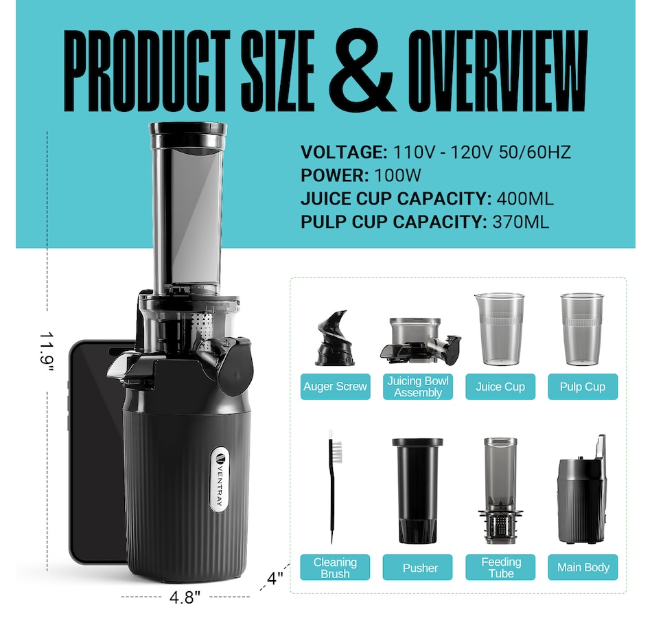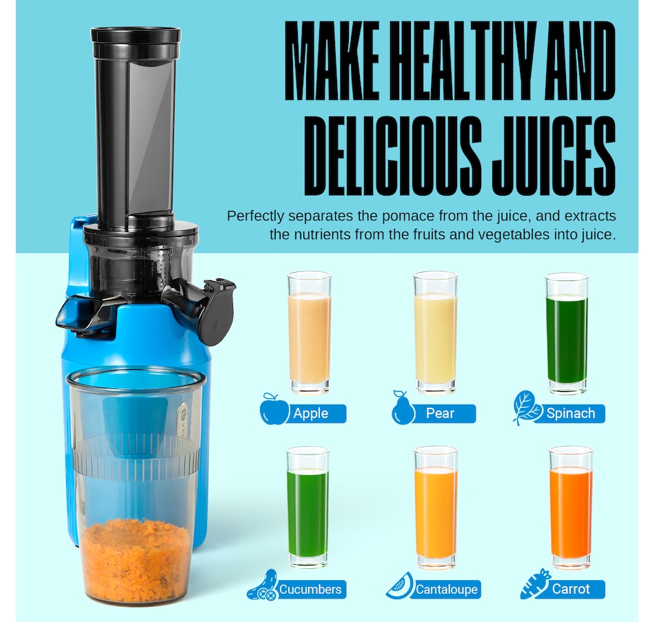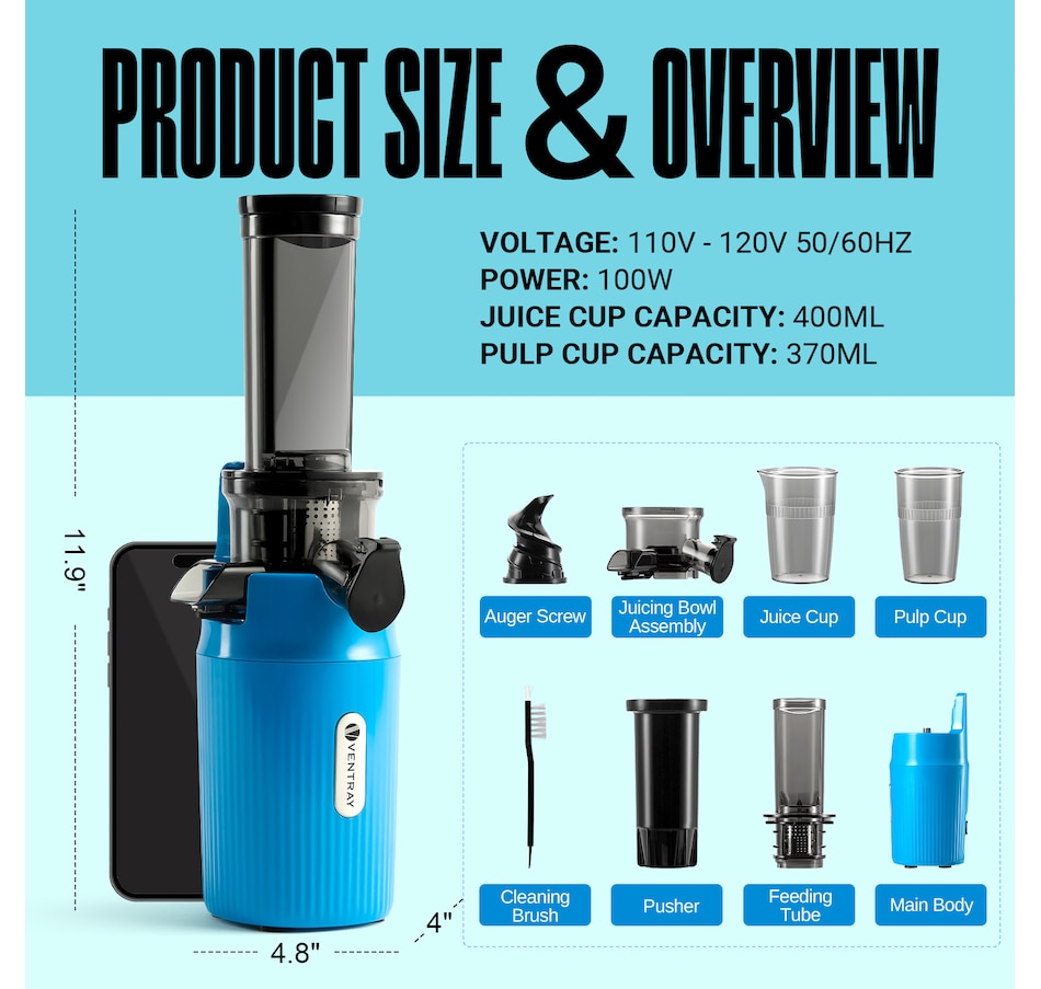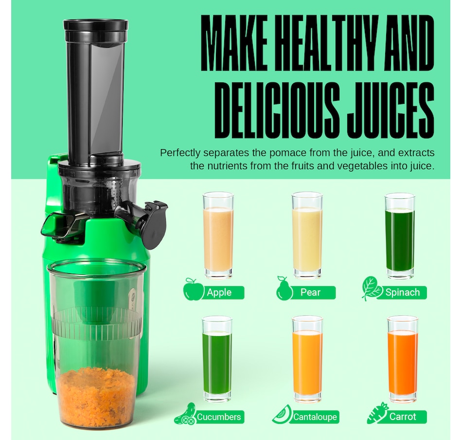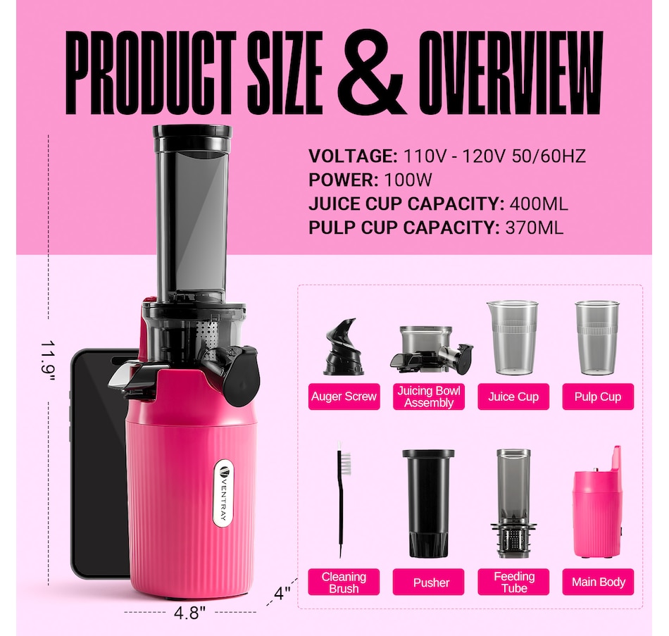 Unlock the full potential of your fruits and vegetables with the Ventray Essential Ginnie Juicer. This compact and space-saving masticating slow juicer operates at a low 60RPM speed, extracting juice with precision to preserve all the essential nutrients and vitamins. It's incredibly easy to assemble and clean, ensuring a hassle-free juicing experience every time. With its nutrient and vitamin-dense output, you can enjoy delicious, healthful juices that energize your body and support your well-being. Plus, the Ginnie Juicer comes in eco-friendly packaging, contributing to a greener planet. Upgrade your juicing game today!