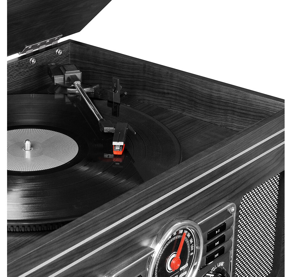 • Features a three-speed, belt-driven turntable for all your favorite (33 1/3, 45, 78 RPM) records.