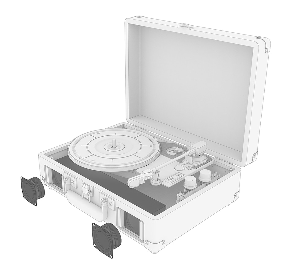 • Three-speed (33 1/3, 45, 78 RPM) record player with built-in speakers provides a crisp, clear listening experience