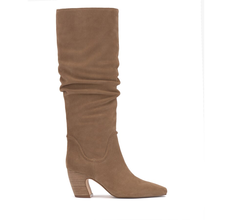Set on a newly shaped heel at a complimentary height, the Chelsey boot from Vince Camuto features elevated ruched details that give a hint of Western flair.