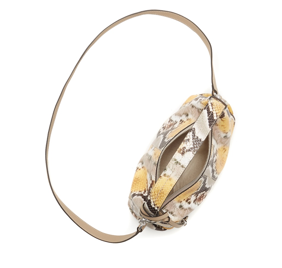 Small 90's-vibe bags are back in the spotlight. Score that fashionable retro look with the Corin, a minimalist crossbody crafted of beautifully embossed snake and pebbled leather. Thoughtfully designed with a sturdy top handle that lets you carry the bag in hand or tucked under your arm, the Corin is also kitted with a detachable strap for wear as an eye-catching shoulder piece.