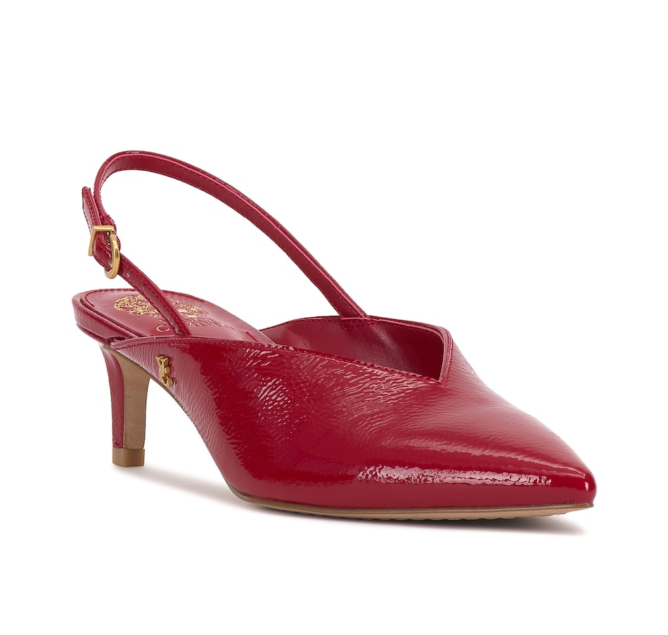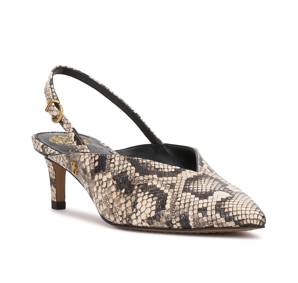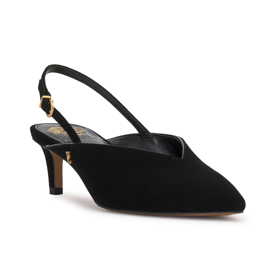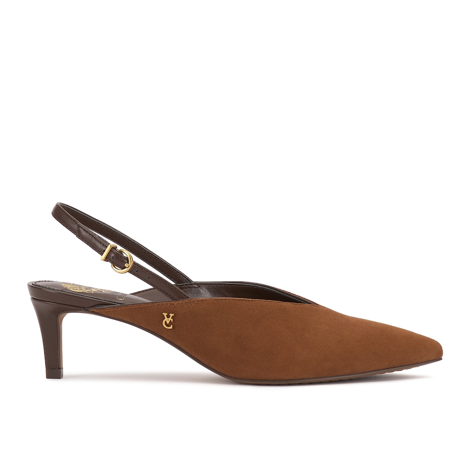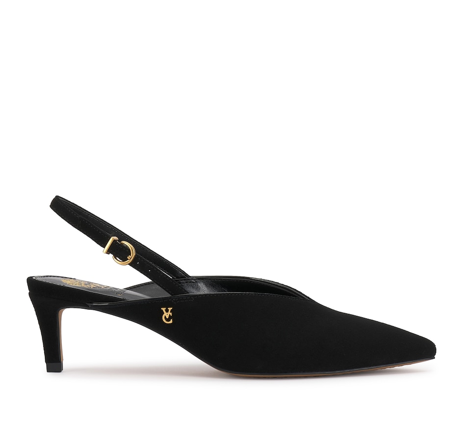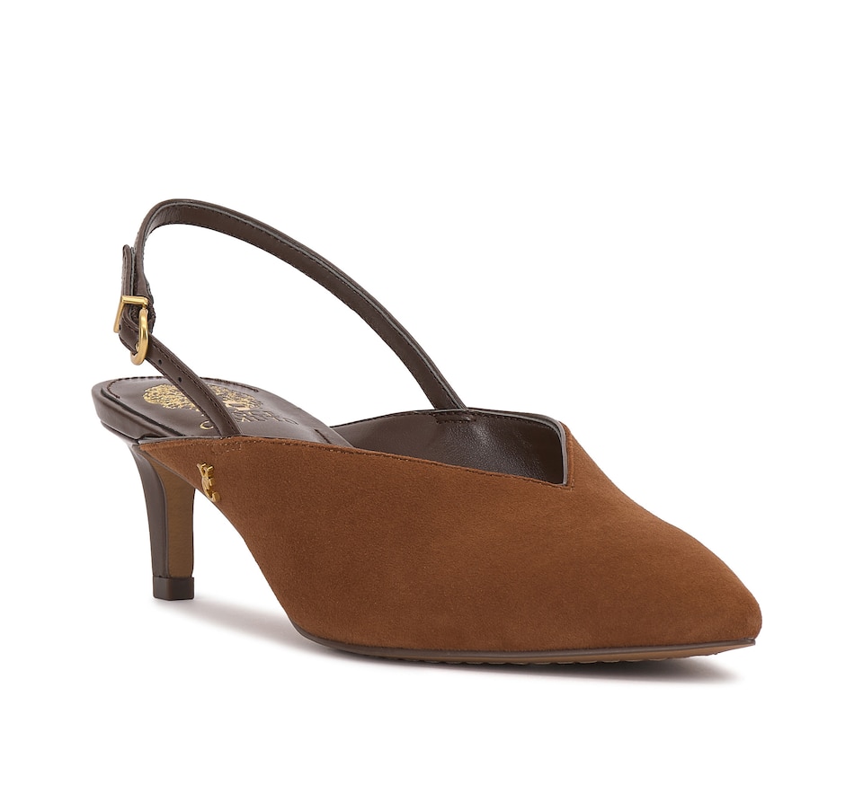 Step into effortless elegance with this Vince Camuto slingback pump, the ideal balance of classic design and modern versatility. With its sleek slingback silhouette and refined details, this pump adds sophistication to any outfit, whether it's for the office or a special night out.
