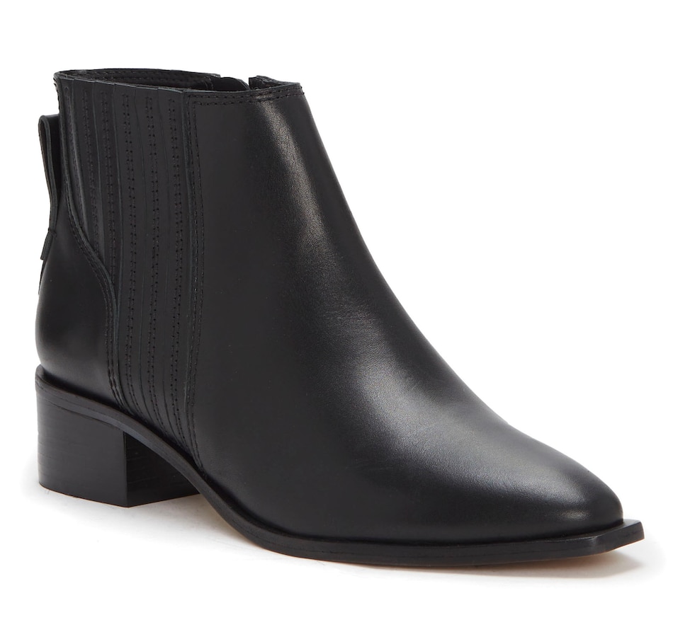 • Pointed toe; side zip closure; ridged detail; synthetic lining