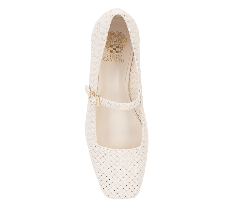The perfect update to Vince Camuto's ballerina collection, woven rich details elevate the look of this Maryjane square toe ballerina slip-on to something exceptional.