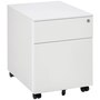 A classic piece for every office area: bring this Vinsetto filing cabinet into your space to keep it neat and paperwork organized. Made from cold rolled steel, the structure is solid and strong, making it suitable for everyday use. It's crafted into a two-drawer design, giving plenty of storage room, with a removable stationery tray and hanging rod for files. With five wheels to move around easily, this storage cabinet with drawers is finished with a lock for security.Features: