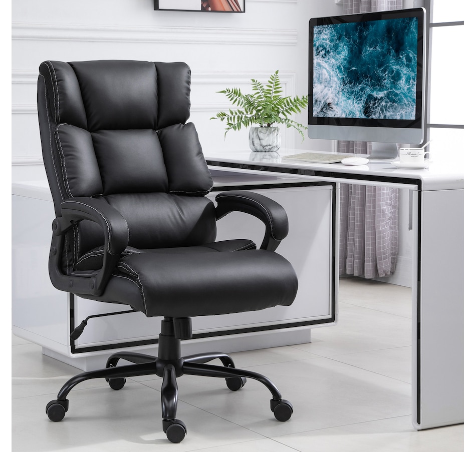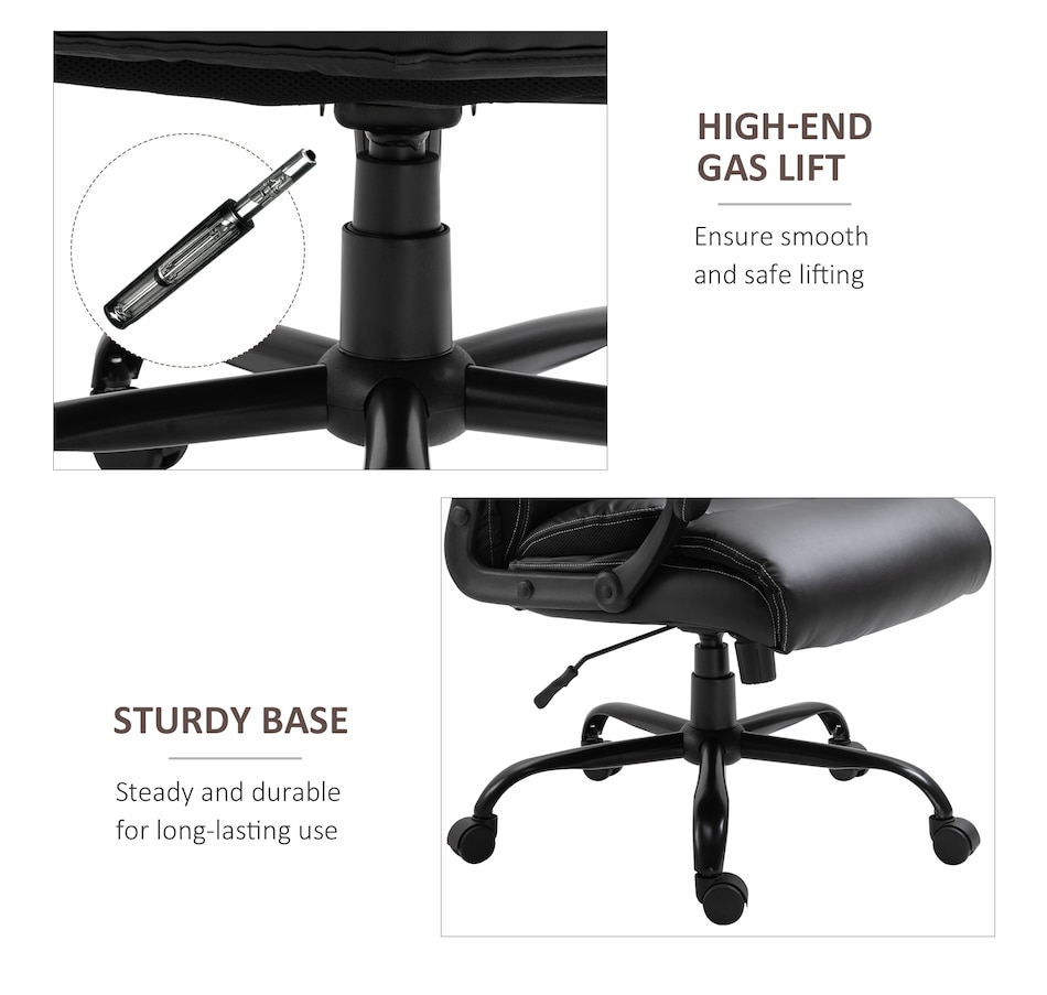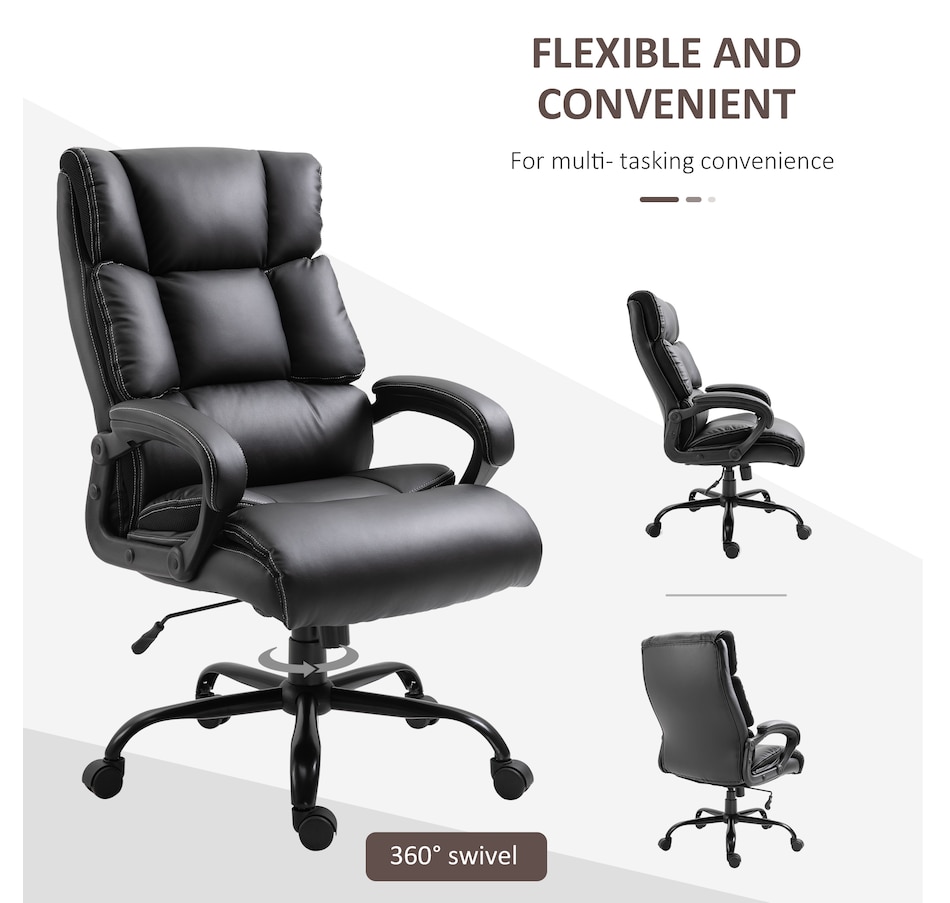 During a long workday, choose Vinsetto for a comfortable swivel chair that gives back support and can withstand all-day use. This executive office chair features an ergonomic line design with thick padding and soft fabric, providing comfort and breathability. Adjust the seat height to achieve the most comfortable sitting position. Utilize the swivel wheels to move around the office without getting up. Make working comfortable with Vinsetto.