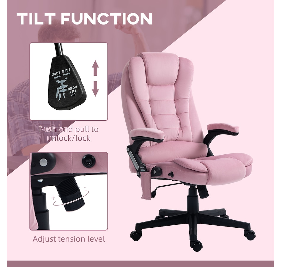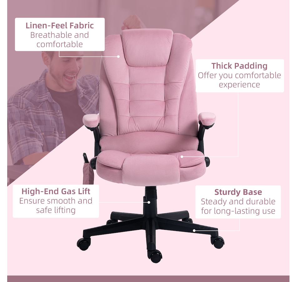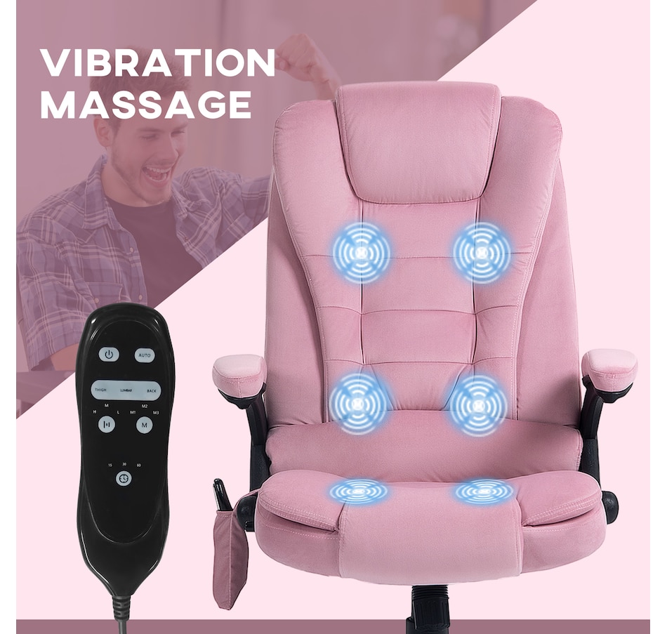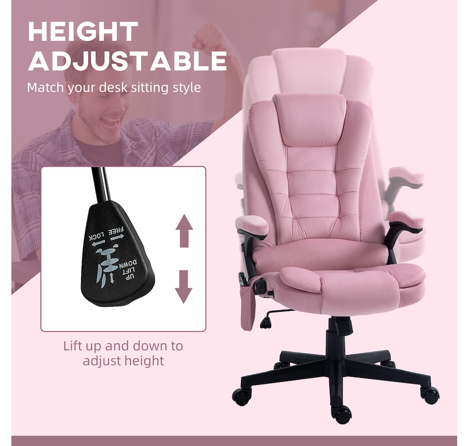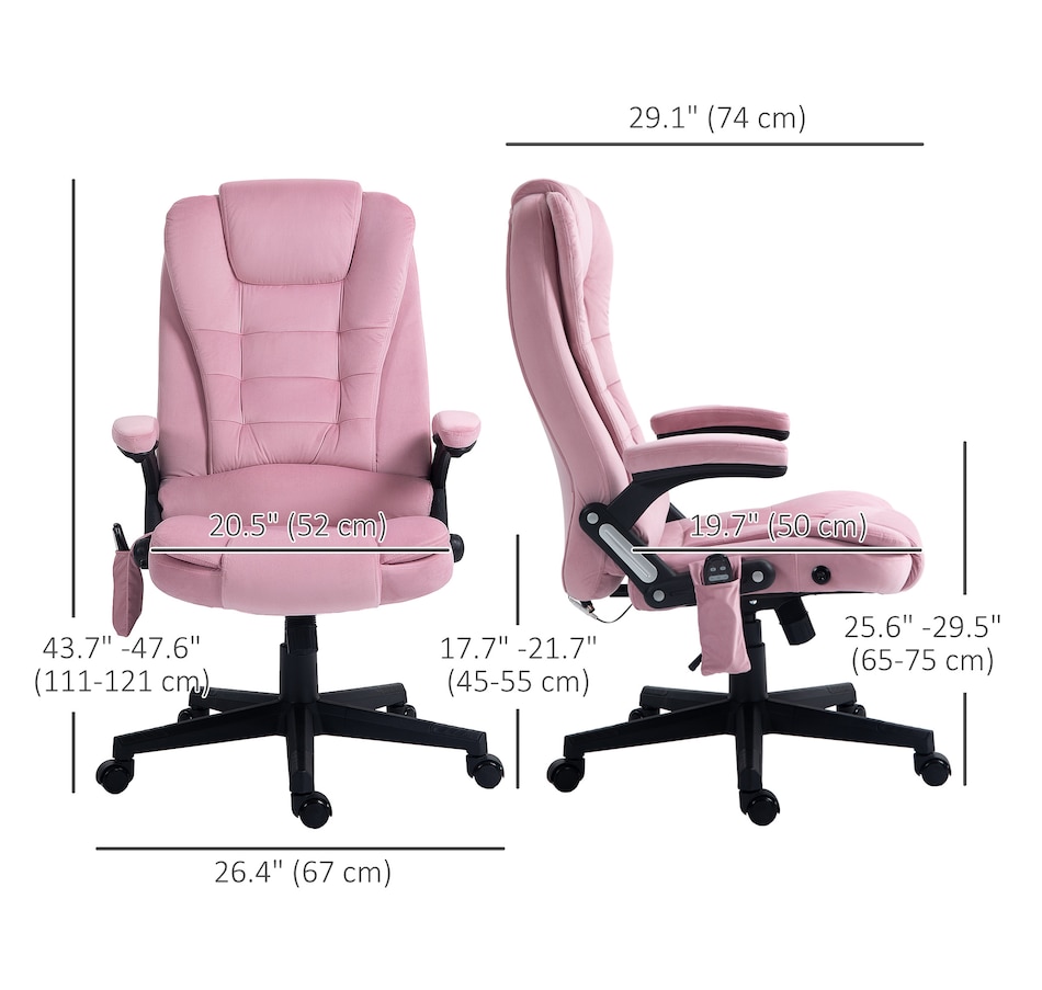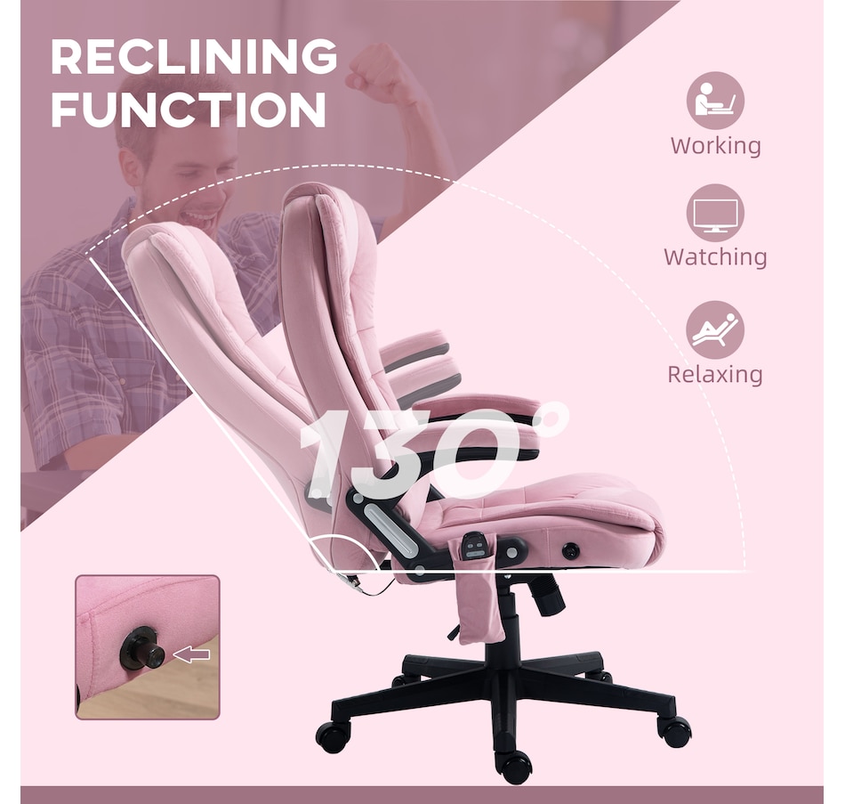 Sit back and relax after a long day. Our massage office chair gives you a relaxing and thorough massage. There are 6 massage points in total, 2 on the shoulders, 2 on lumbar, and 2 on lower back. 130 Degree reclining and adjustable seat height. Customize your favourite angle and height. The curved design will ensure your maximum comfort experience. We use quality velvet-feel fabrics to provide breathable comfort, and thick sponges.Features: