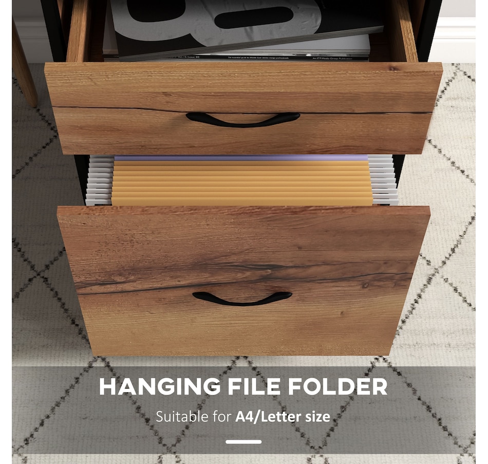 - Two drawers with adjustable hanging bars to hold A4 or Letter sized files