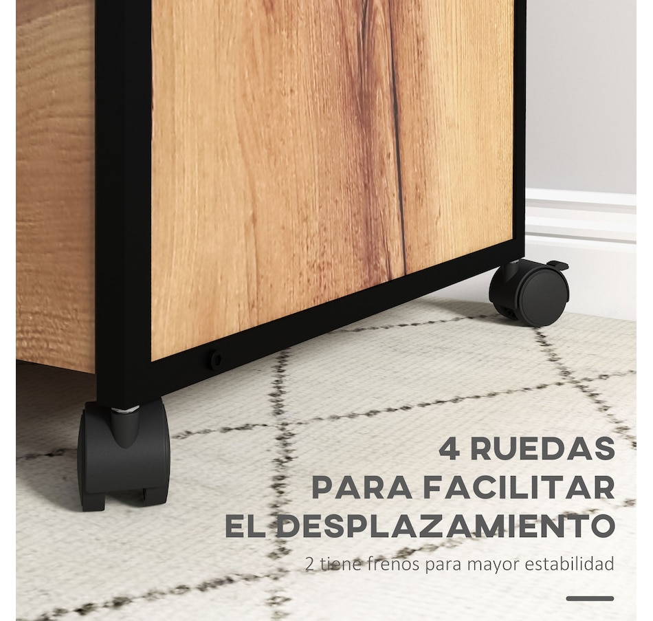 - Four rolling wheels and two with brakes allow you to move it where you need it