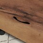 - Rustic wood texture panels and black metal frame adds an industrial charm