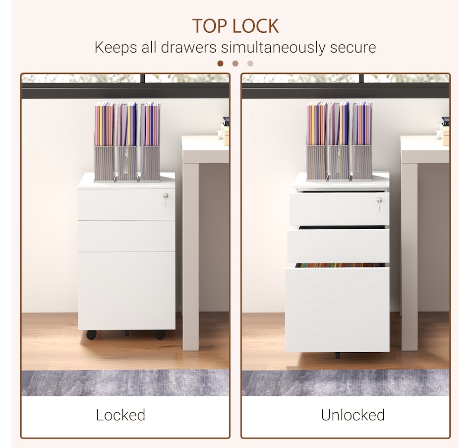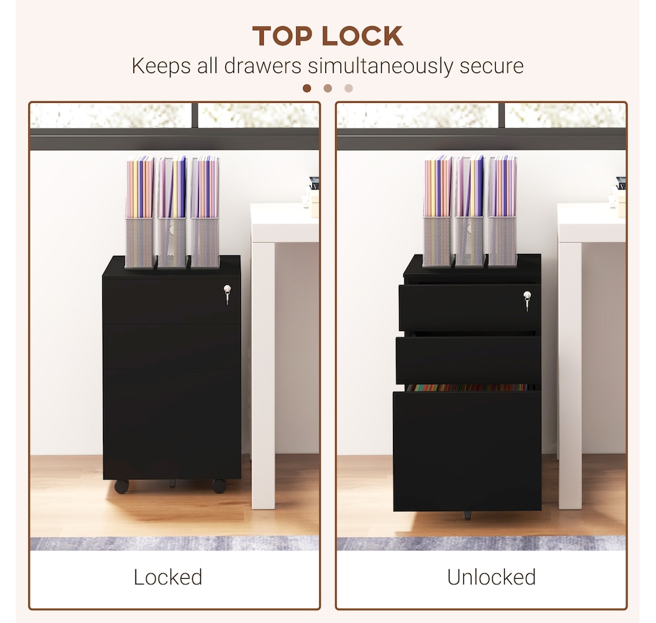 Do you have an office space that's lacking in storage? Stop losing things you need because you throw it "anywhere" or pile it on top of your desk. This storage cabinet with drawers from Vinsetto is ready to be your assistant through the busy work day. Have everything you need and know where it is so you're spending more time being productive rather than shuffling through that stack of papers trying to find that thing. If you stay ready, you don't have to get ready with Vinsetto file cabinet.