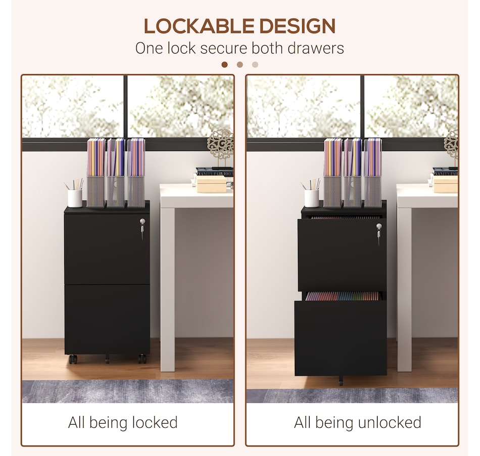 Do you have an office space that's lacking in storage? Stop losing things you need because you throw it "anywhere" or pile it on top of your desk. This storage cabinet with drawers from Vinsetto is ready to be your assistant through the busy work day. Have everything you need and know where it is so you're spending more time being productive rather than shuffling through that stack of papers trying to find that thing. If you stay ready, you don't have to get ready with Vinsetto file cabinet.Features: