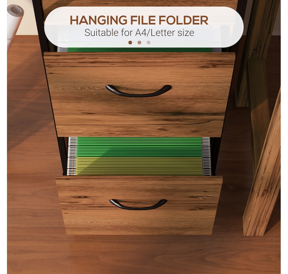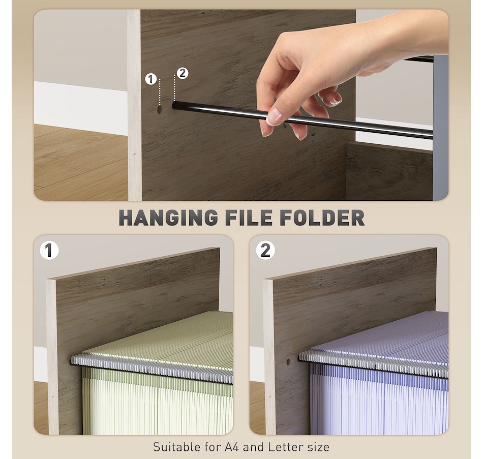 Vertical Filing Cabinet with Hanging Bars for Letter and A4 Size