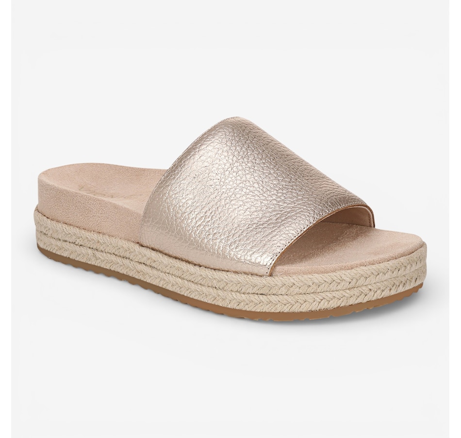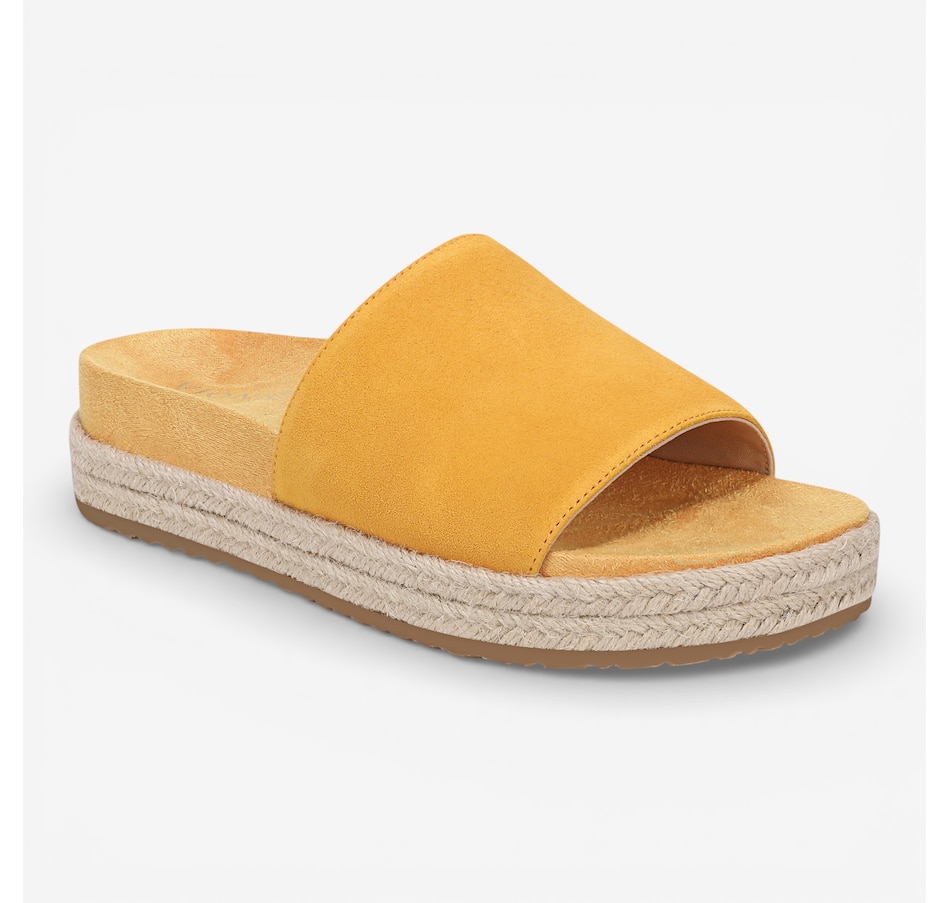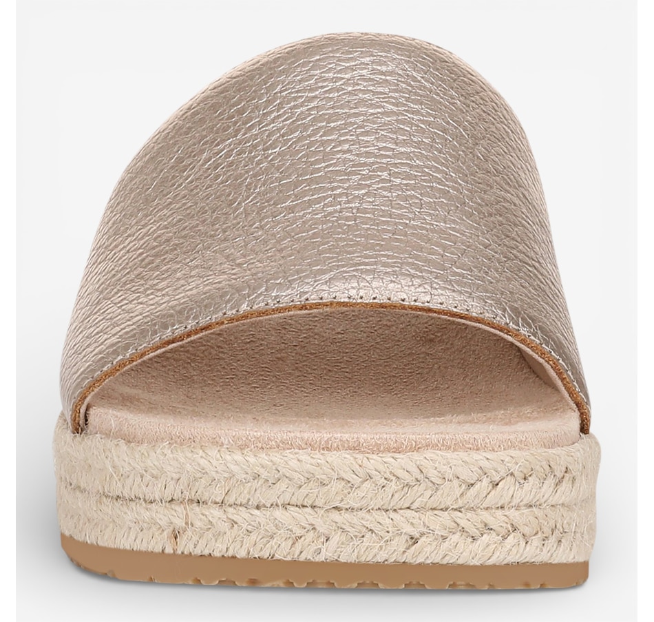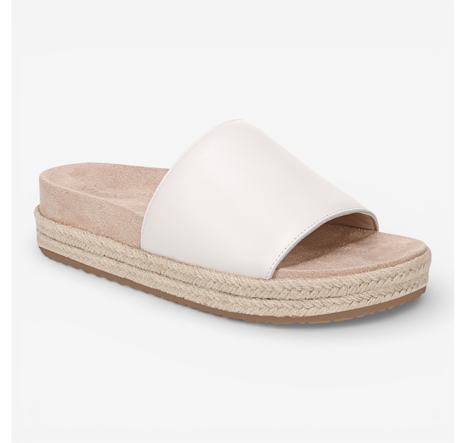 Slip into elevated ease with the Yasmina slide sandal, a lightweight platform design that brings together breezy espadrille styling and all‑day comfort. Its jute‑wrapped sole adds effortless summer charm, while the softly padded upper band and hidden gore create a personalized fit that moves naturally with you. Crafted in supple leather or suede, the Yasmina delivers a refined look that feels as good as it appears. Finished with a Vio Motion™ technology‑designed orthotic EVA footbed, this slide supports every step, making it ideal for warm‑weather days that call for both style and comfort.