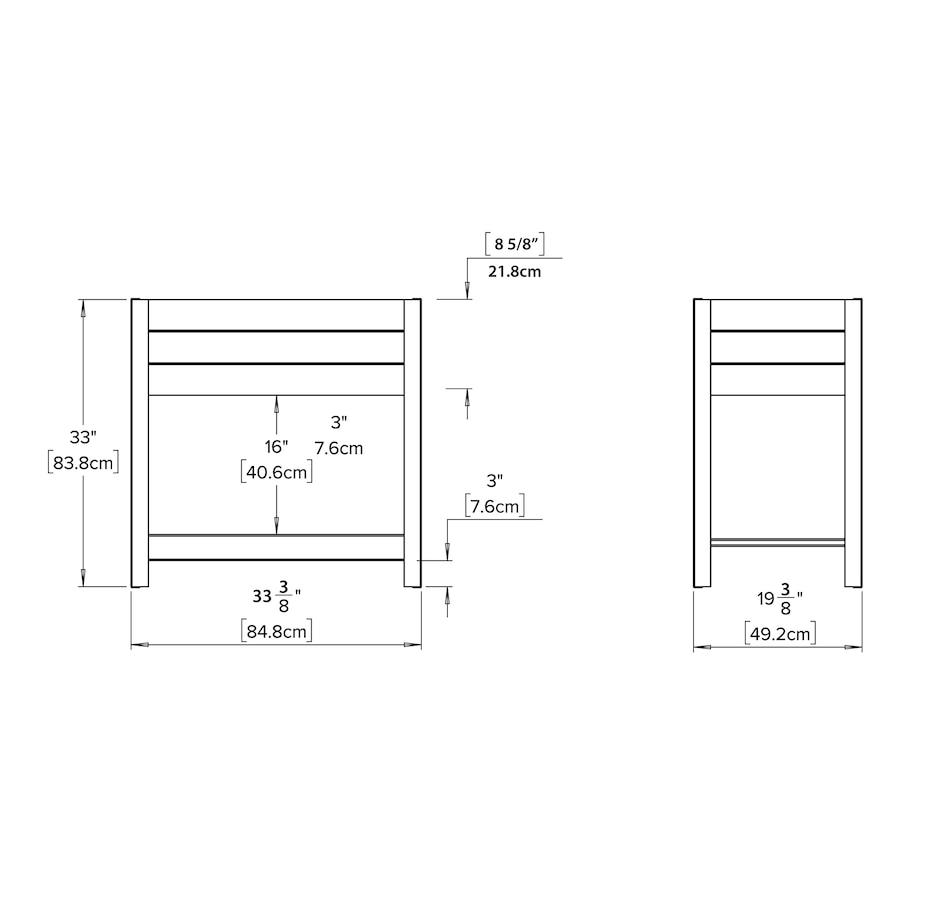 • Dimensions: 33.4"L x 19.4"W x 33"H