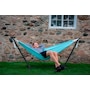 This double hammock from Vivere brings you the durability and saturated colour of a woven polyester hammock with polyester end strings, ensuring a long-lasting hammock. This single-ply hammock fits perfectly on the included heavy-duty steel stand, the zinc-coated legs can help prevent rust, and the plastic end caps are fitted on the steel tubing to create a soft finish. The stand gives you the freedom to set up the hammock in a location that's most convenient for you; you no longer rely on those two perfect trees!