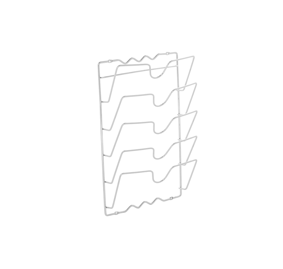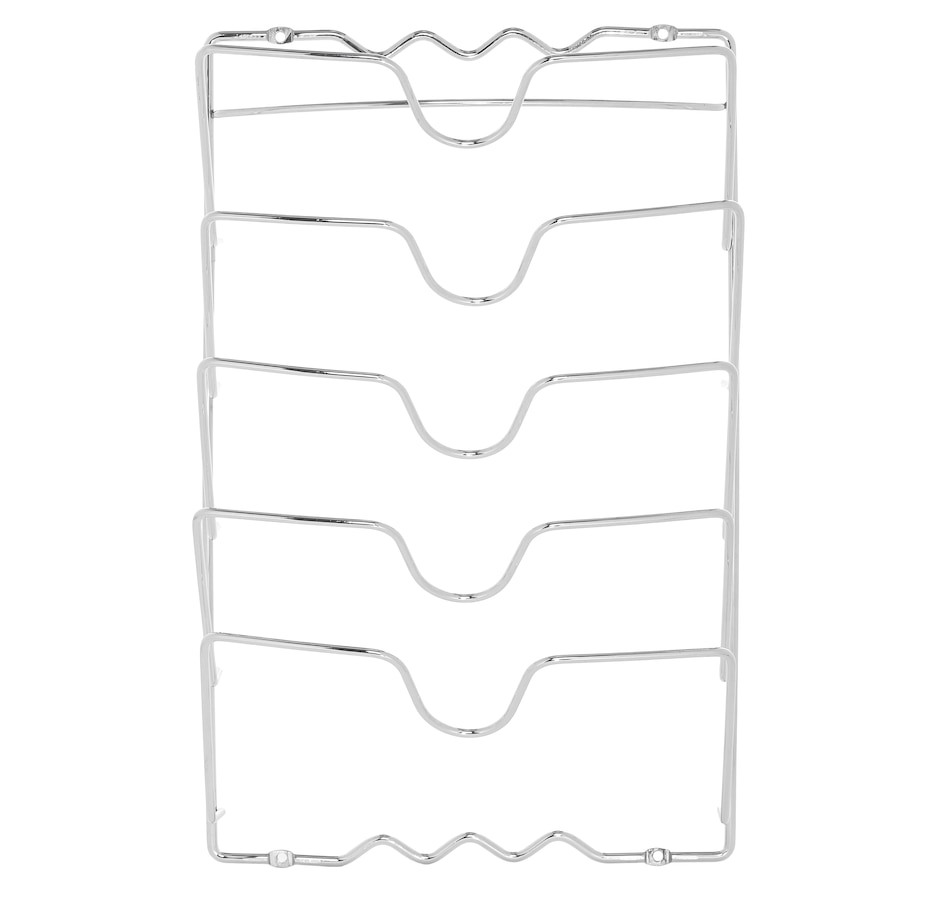 This Wall Mounted Pot Lid Rack is a great addition to organize pot and container lids. It can easily be mounted on doors, thus it gives additional floor space to organize other stuff. Great space saver for the small kitchen or cooking area. Wall or cabinet door mounted to save space..Sturdy and heavy gauge metal.Chains Included: No.Assembly Required: Yes. It is easy to clean and maintain. Wipe this towel rack with a clean, dry cloth to maintain its original look.
