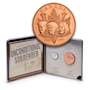 This set marks the 60th anniversary of VE Day—Victory in Europe near the end of WWII in 1945. It includes a 2005-dated silver proof five-cent coin and a large-format bronze medallion depicting land, air and sea imagery on the reverse and the late King George VI on the obverse. A 36-page booklet is also included in the presentation, which details Canada's significant role leading up to the end of the war in Europe, and includes photographs depicting the Canadian effort.