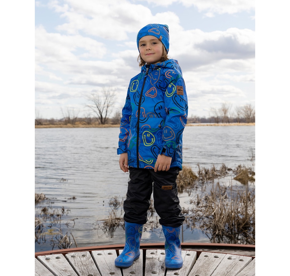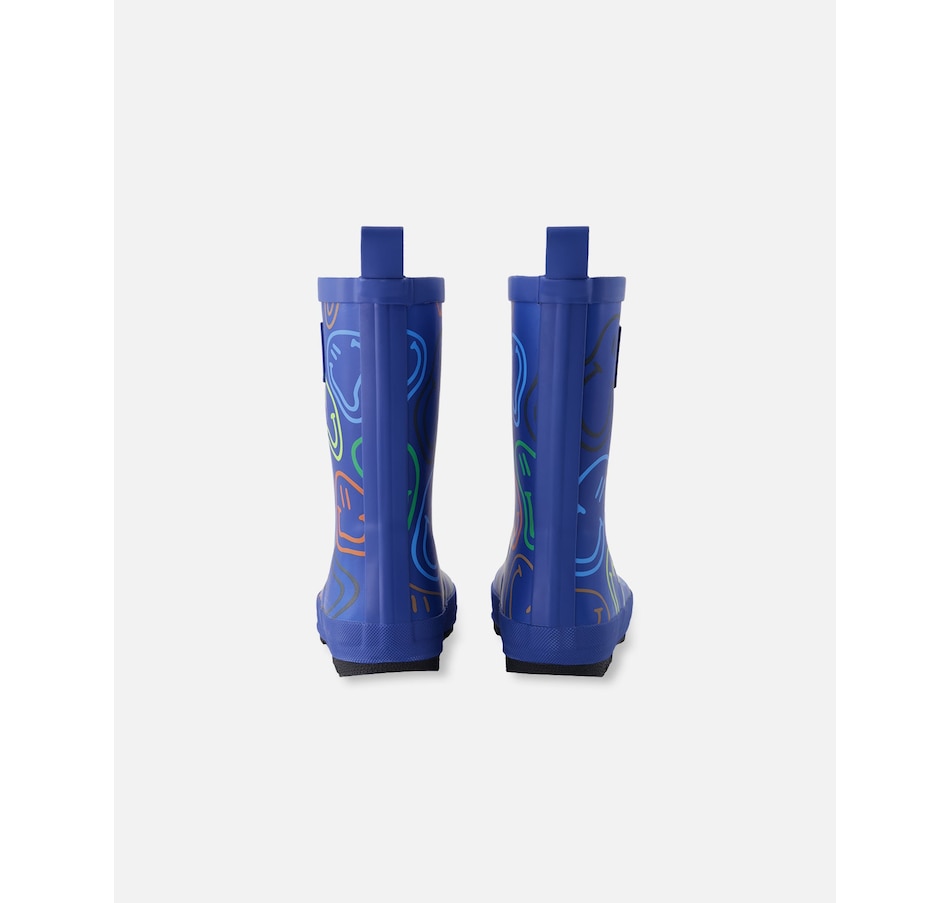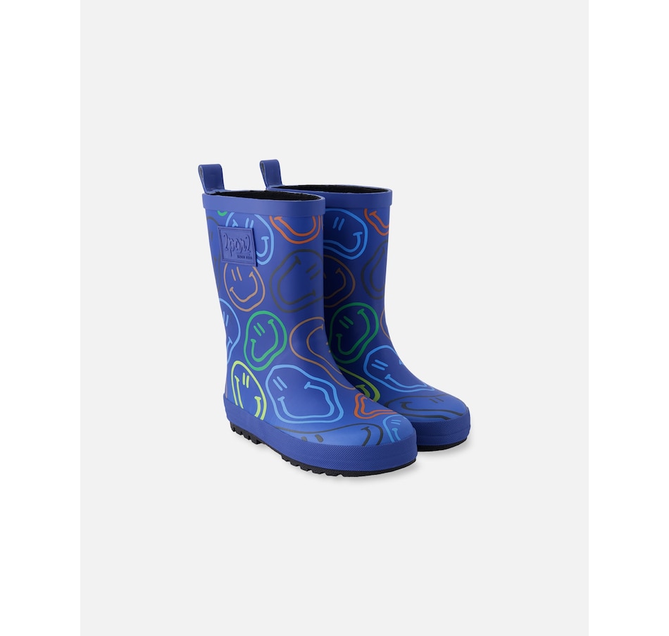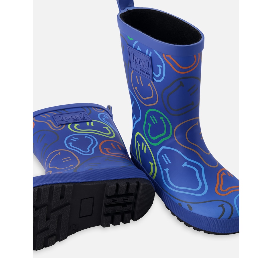 Our natural rubber rain boots in blue with smiley print are designed to keep little feet dry and comfortable through every puddle adventure. Crafted from 100% natural rubber, they feature a cute allover print, and a fine plush lining for extra warmth and softness. BPA, phthalate, and PAH free, these waterproof boots are a safe and durable choice for all.