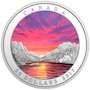 Designed by Canadian artist Tony Bianco, this coin features a breathtaking fiery sunset in the alpine landscape of Western Canada. Detailed engraving and the careful use of various finishing techniques add a feeling of remarkable height and depth to the design, as the rugged edges of the Rocky Mountains rise up to frame the horizon while towering over the coniferous forest along the lake's shoreline. Engraved to the right is a mountain lodge, which adds a subtle human element to this tranquil setting.