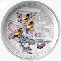 Through the innovative use of technology and colour, this coin presents a snapshot of an icy winter day. The design features three evening grosbeaks as they move along ice-covered branches. With the use of selective colouring the birds and berries stand out from the countryside in the background. The addition of high-gloss overlay recreates the glistening ice cover of a winter freeze.