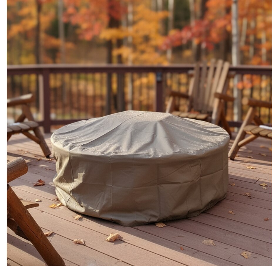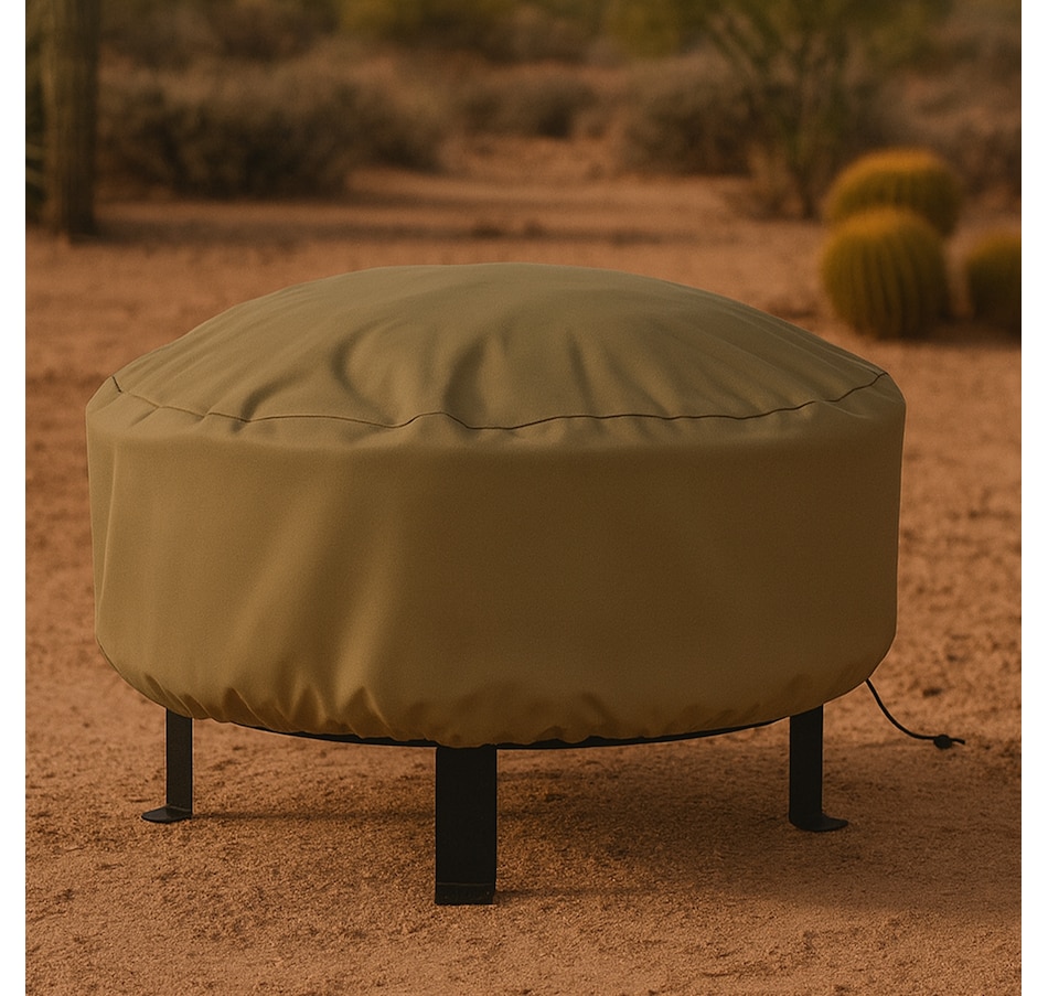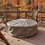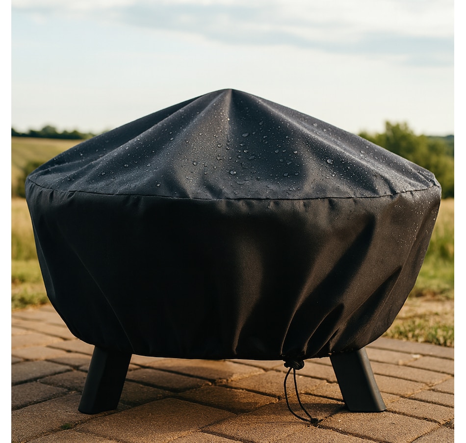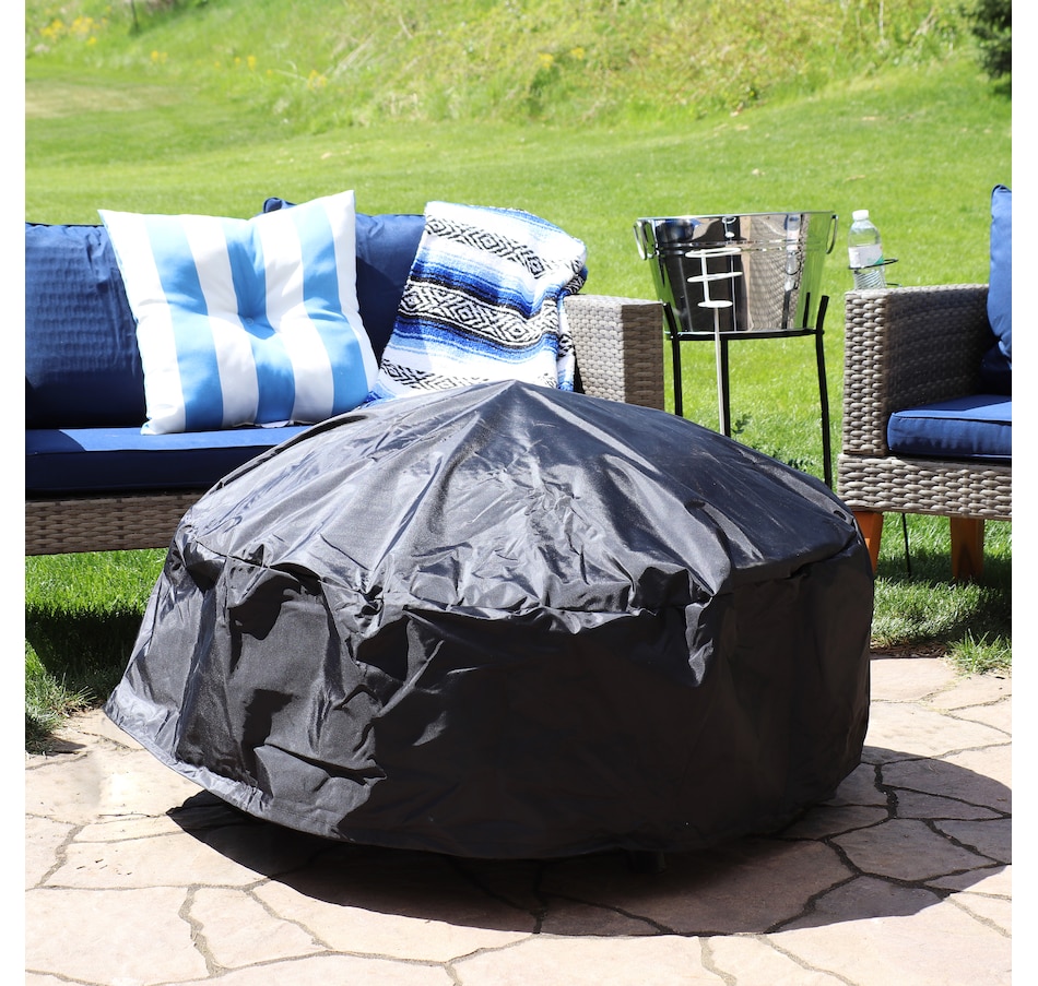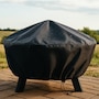 Keep the fire pit safe throughout the year despite weather, wear, and extensive use with this durable and round fire pit cover. Water and weather-resistant, this heavy-duty, round fire pit cover is made from 300D polyester with PVC backing. The PVC backing ensures durability and ability to withstand the elements. This cover features a convenient drawstring and toggle tie at the bottom to allow the cover to adjust for the right fit and securely strap the cover to the fire pit. If the fire pit is taller than the cover, don't worry! Simply use the drawstring to secure under the bowl and know that the cover does not need to cover the legs of the fire pit.