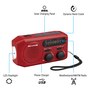This multifunctional device from WeatherX features a weatherband radio with AM/FM radio and flashlight, a built-in speaker, an emergency siren, dynamo hand-crank power and solar-panel charging. The weatherband provides access to seven weather channel broadcast frequencies, the USB port offers convenient mobile-phone charging, and the micro-USB port is for battery recharging.