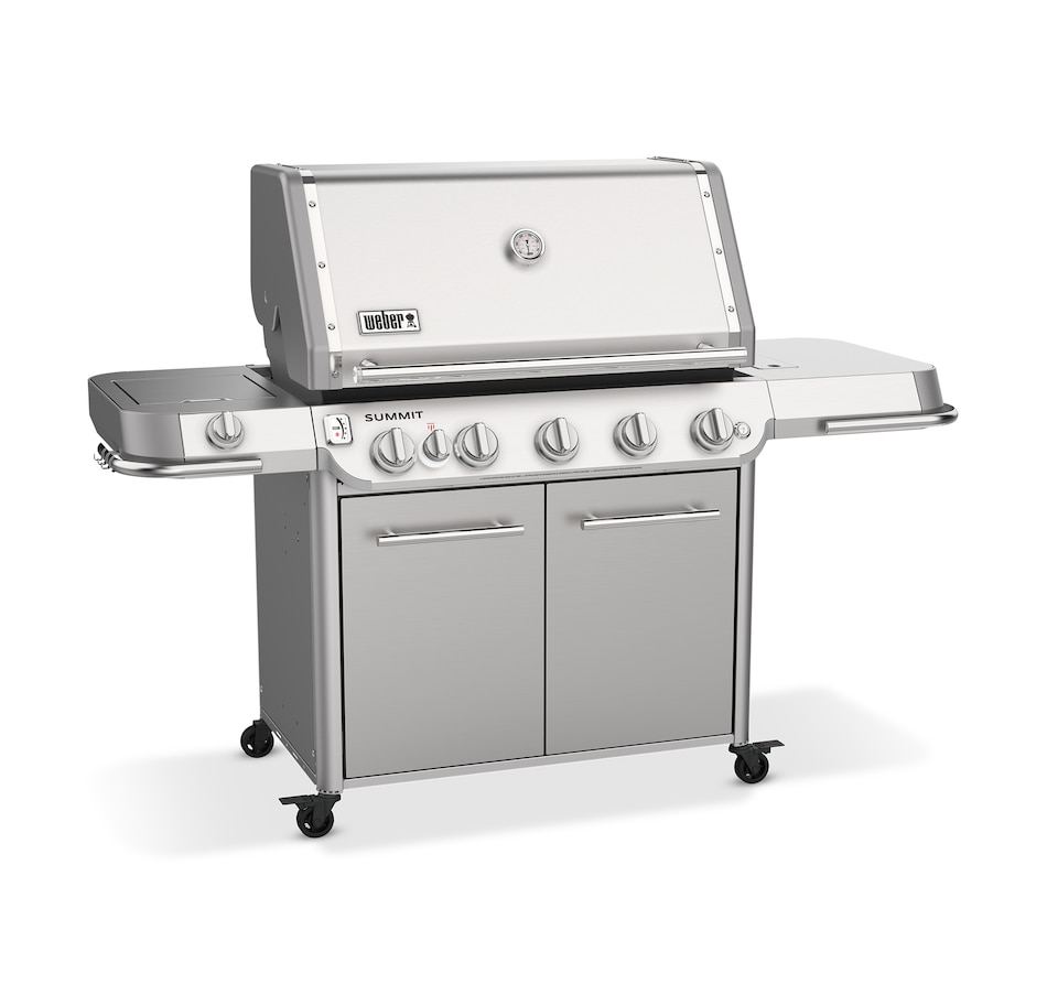The Weber Summit FS38 S Gas Grill is the pinnacle of outdoor cooking, combining sleek stainless-steel design with unmatched grilling versatility and performance. Perfect for backyard chefs who crave precision and convenience, this high-end grill features four powerful stainless-steel burners that deliver consistent heat across a generous 4,688-square-centimetre cooking area. The dedicated sear station provides intense heat for perfectly seared meats, while the tuck-away rotisserie system with a rear infrared burner allows for roasting whole chickens and large cuts of meat with ease. The integrated smoker box with a dedicated burner lets you infuse your dishes with rich, smokey flavour, expanding your grilling options for a full gourmet experience. Porcelain-enameled cast-iron cooking grates ensure excellent heat retention and make cleanup easy. The built-in thermometer ensures precise temperature monitoring, while the electronic ignition system guarantees quick and reliable startups. Stainless-steel side tables offer ample prep space, and the enclosed storage cabinet keeps grilling tools and accessories organized and protected. Built to withstand the elements, this grill is as durable as it is stylish, making it the perfect centrepiece for any outdoor cooking space.