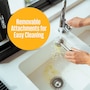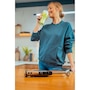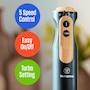 The Westinghouse hand blender is the perfect addition to any kitchen. With its sleek black matte stainless steel finish and Scandinavian wood print, it's sure to look great on any countertop. But it's not just about its good looks; this blender is also powerful and versatile. The 500-watt full copper motor is perfect for all your blending needs, from making smoothies and soups to pureeing baby food. The five-speed control lets you adjust the speed to the perfect setting for each task, and the turbo mode provides added power for tough ingredients like ice. Its detachable design makes for easy cleaning, and the ergonomics ensures a comfortable grip, even during extended blending sessions. The multi-function blade can blend, froth, and whisk with ease, making it ideal for a variety of tasks!