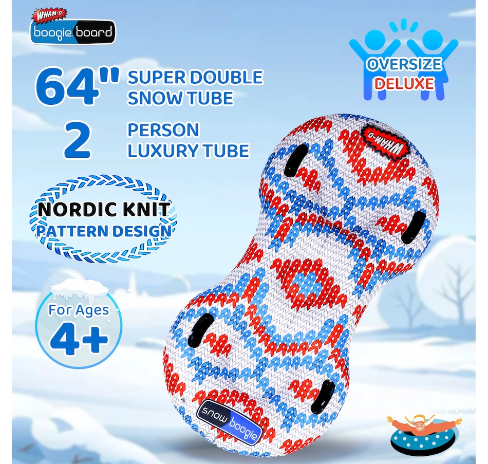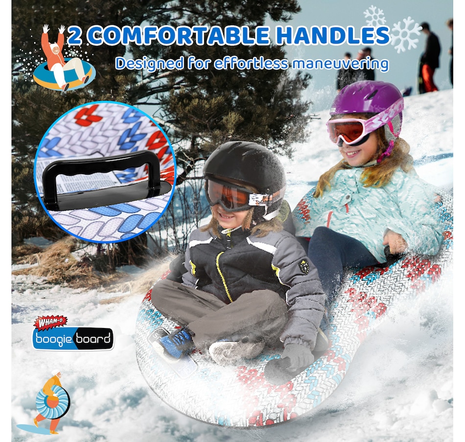 Snowboogie 64" Super Double Snow Tube, Double Rider Snow Sleds with Handles for Kids and Adults