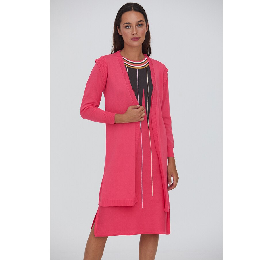 Enjoy the cozy charm of this long cardigan with ruffle detail from Why Not.