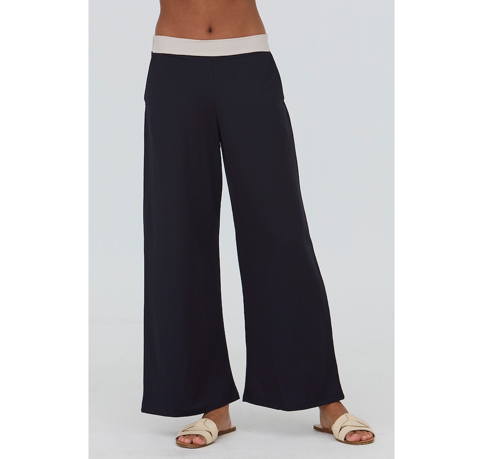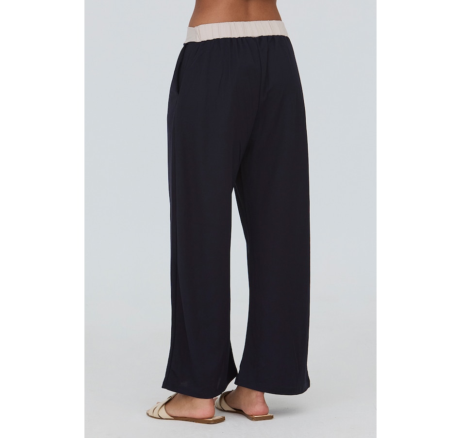 • Wide leg pant with side pockets and contrasting waist