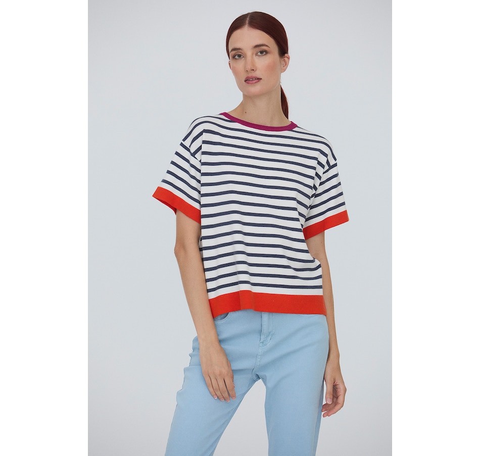 Colourful and vibrant, you'll centre your look in chic style with this short sleeve crew neck top from Why Not.