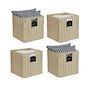 decomomo cube storage bin is made with woven plastic and supported by a metal frame. Adds a chic, modern, and rustic look to your home décor. Plastic storage cubes come with complimentary blackboard labels and white marker with erasable ink making them reusable.