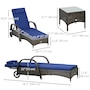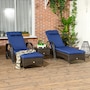 Wicker Patio Lounger Set with Cushions, Reclining Lounger, Dark Blue