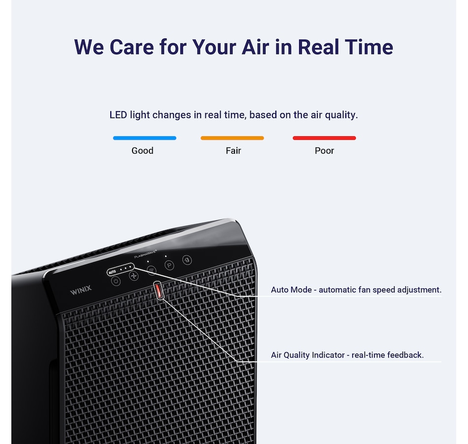 • Visual indicator displays real-time air quality in the room with LED lights