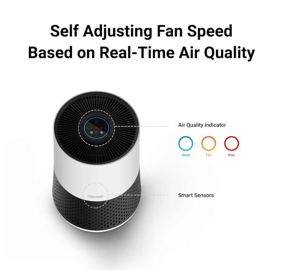 • Smart sensor and auto mode: built-in air quality sensor measures and adjusts fan speed in real-time