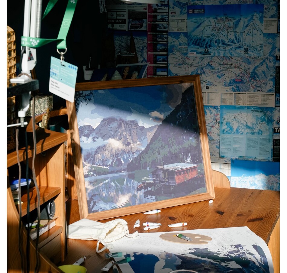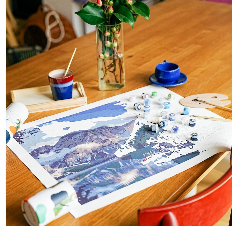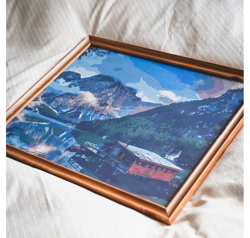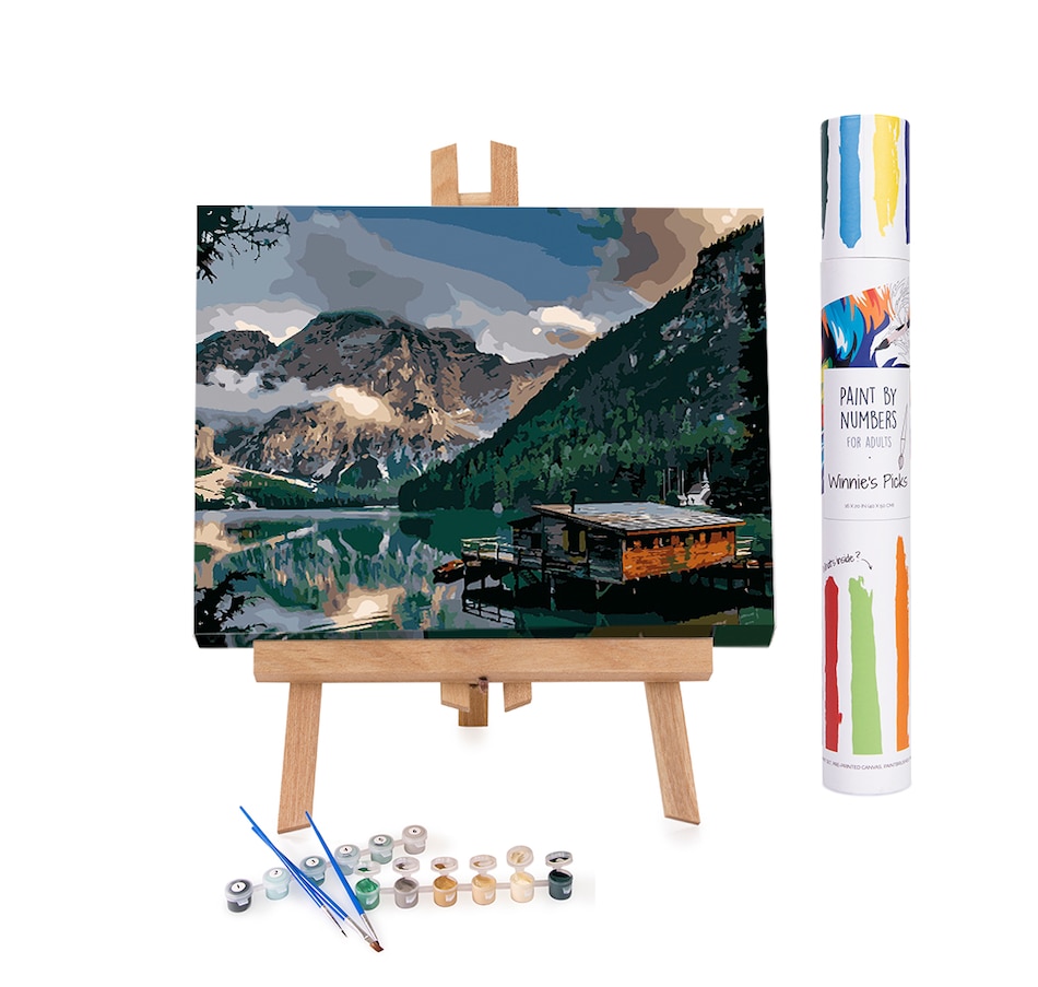 Escape to the stillness of the Nordic wilderness with Norwegian Fjord Cabin, a paint-by-numbers kit from Winnie's Picks that captures the pure tranquility of mountain life. Nestled beside crystal-clear waters, the wooden cabin mirrors the majesty of towering peaks and misty skies reflected in the serene fjord below. Each brushstroke brings the landscape to life, from the soft glow on the cabin’s wood to the reflections dancing across the lake’s surface. Perfect for artists of every level, this kit invites you to slow down, breathe deeply, and paint your own moment of Scandinavian calm.