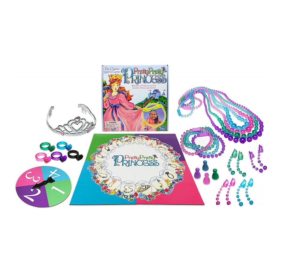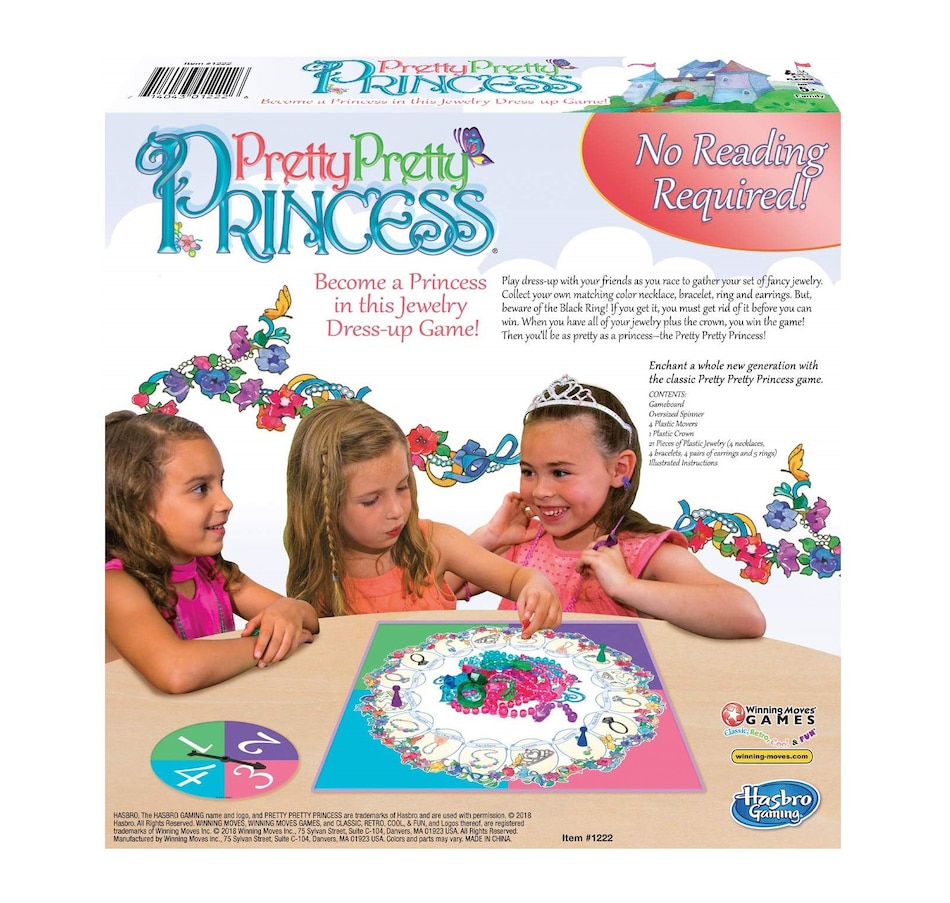 Play dress-up with your friends as you race to gather your set of fancy jewelry. Collect your own matching color necklace, bracelet, ring and earrings. When you have all of your jewelry plus the crown, you win the game! Then you'll be as pretty as a princess - the Pretty Pretty Princess!