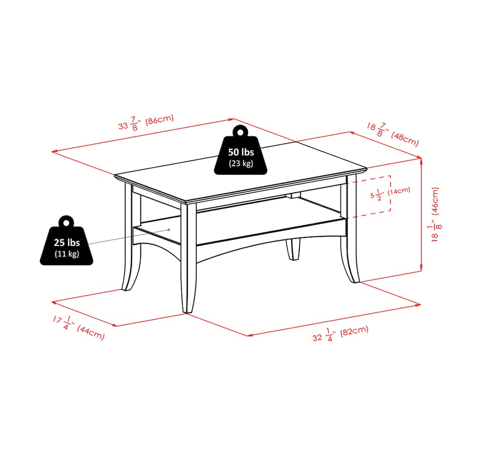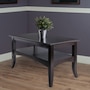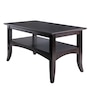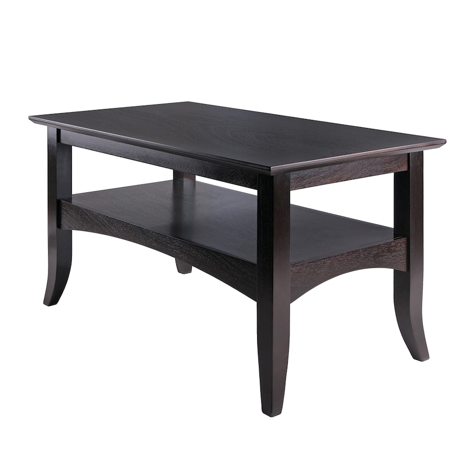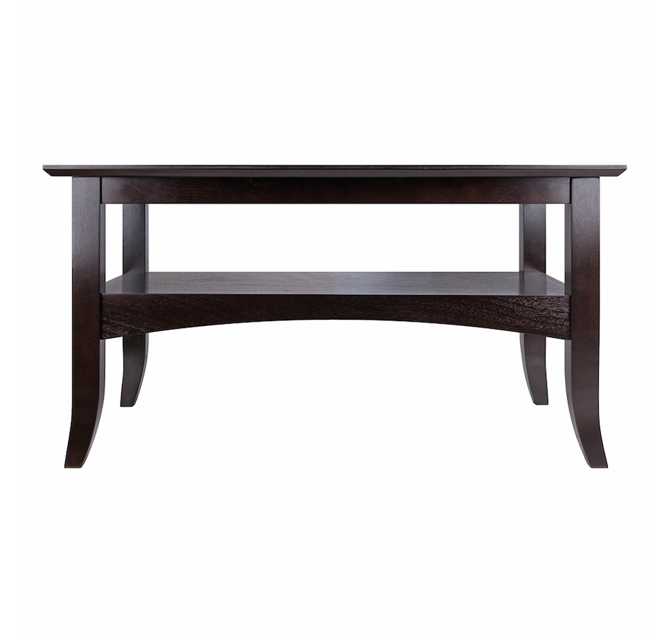 Simplify your family room while adding a touch of elegance and class with the Winsome Camden coffee table. This collection is uniquely defined by its style of slightly flared legs and curved aprons, that offer an attractive and functional space for your daily needs. Enjoy a refreshing cup of coffee in style with your friends and family as you gather in your living room! Large surface space and a lower shelf with ample storage for things such as books, frames, knick-knacks, and other daily use items. The natural wood grain brings out the warmth and elegance of the rich coffee finish. It is made up of remarkably sturdy solid wood for long lasting durability. Coordinate this coffee table with other furnishings from the Winsome Camden collection for a cohesive look throughout your home. Conveniently packed and shipped in one box that includes the hardware necessary for assembling.
