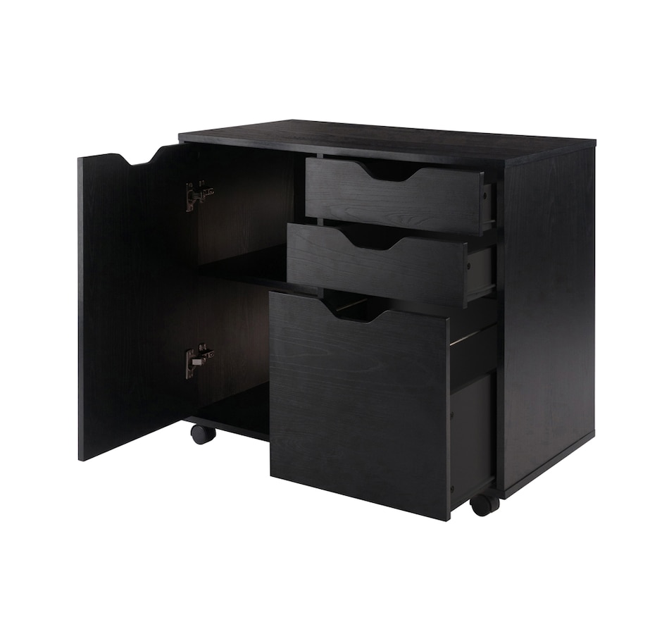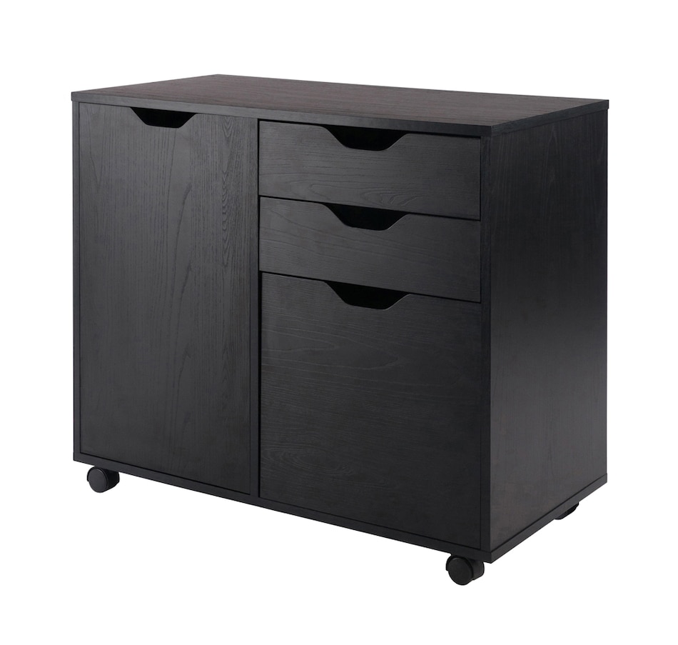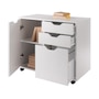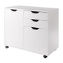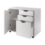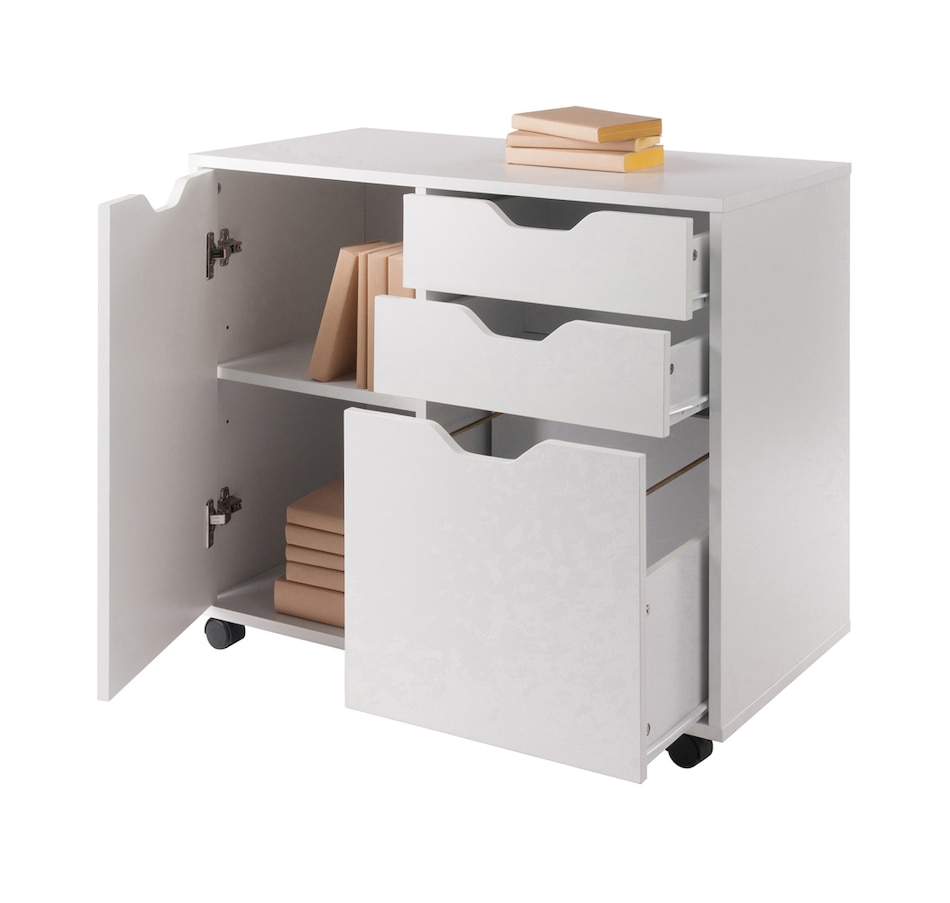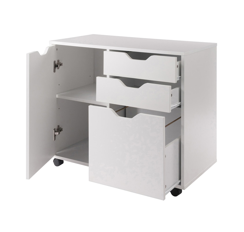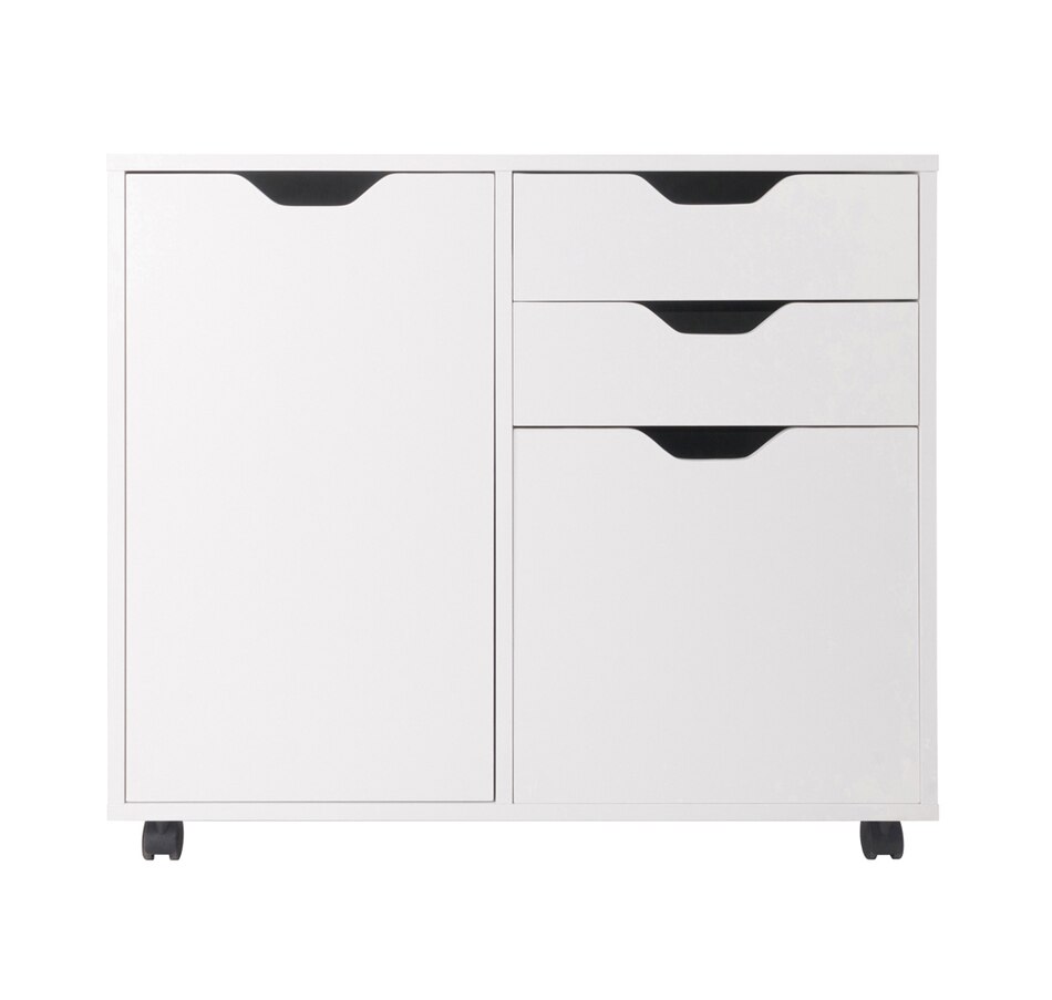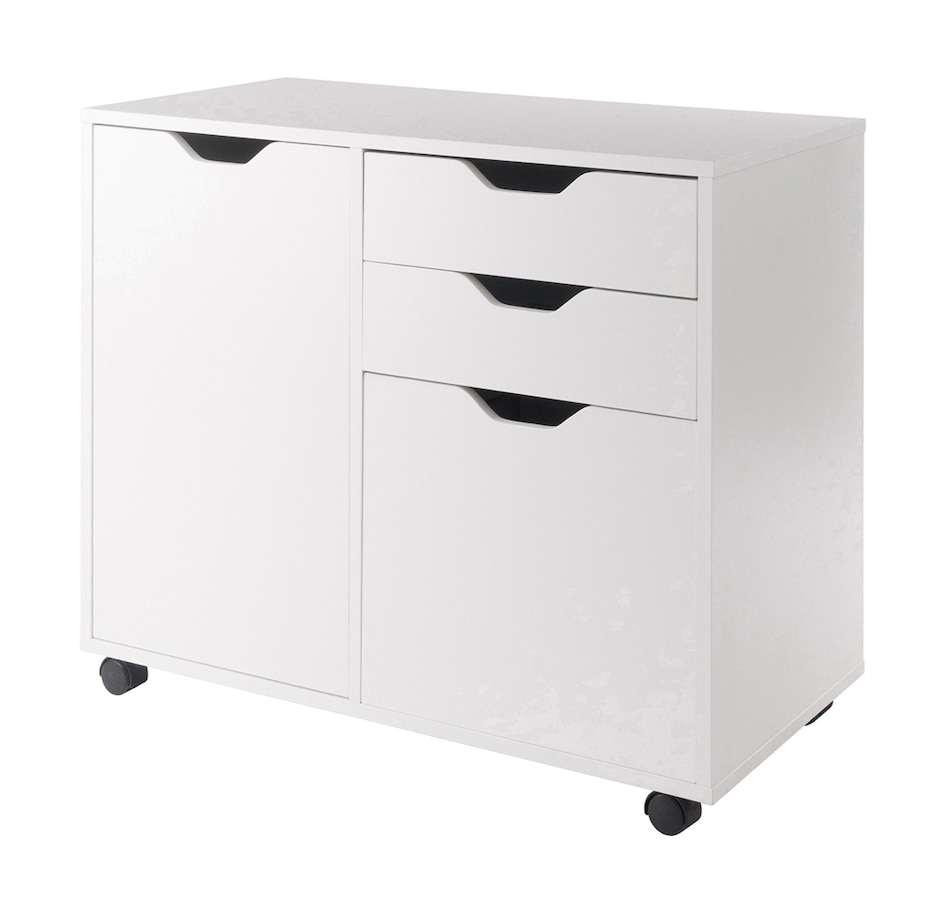 Use the Winsome Wood Halifax 5-Drawer High Cabinet for a variety of organizational needs. A clean, simple design that you will find function to in just about any room of your home. Eliminate the appearance of clutter in your bedroom, craft room, dorm, kitchen or office. The Halifax storage carts feature a multitude of drawers with cutout drawer pulls that allow for easy-open access and helps create an easily accessible storage unit. Store paper and other material used for a business in your in-home office or den. An ideal storage addition to your walk-in closet, the five easy glide drawers are perfect for jewelry, styling accessories, makeup pallet and brushes. The upper cabinet is suitable for slightly larger items or linens. Sitting on four casters, two of which lock, allowing for easy mobility when needing to move or locking in place to use as a stationary. Constructed of sturdy composite wood in a white finish that is sure to blend with any décor. For additional storage, pair with other organizers from the Winsome Halifax collection.