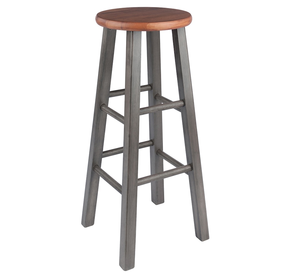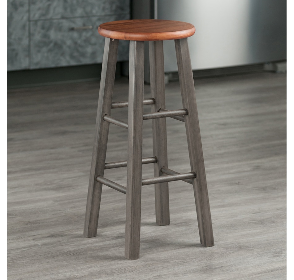 Bring a little farmhouse to your den, kitchen, or family room seating area with the versatile Winsome wood Ivy bar stool. With a teak finished seat and rustic gray frame, this weathered finish brings out the warm, handcrafted feel of the solid wood and will look right at home with either traditional or country decor. Featuring high and low crossbars on all four sides for stability and comfort, it makes this stool not only attractive but also very functional. The already-assembled, square legs and 12” round seat have a sturdy built and hold a static weight of 220lbs. Ideal for extra seating when company comes over; pull up a stool then set it aside, or use as a stand. The simple but appealing rustic edge allows it to be used as a side piece to display a small plant, lantern, or vase. The Winsome Ivy collection is available in other rustic finishes and like most Winsome stools it’s available in both bar and counter height. It is conveniently packed and shipped in one box and is ready to use, no assembly is required.