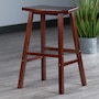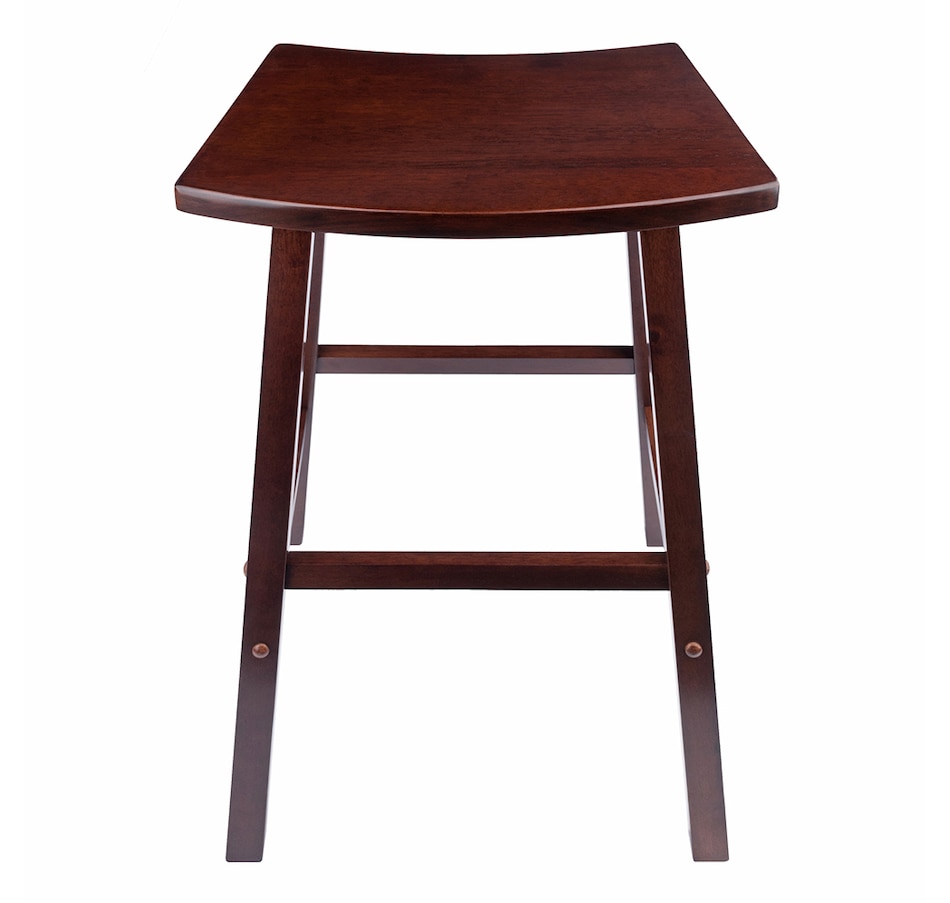 Experience the utmost in comfort and style with the one-of-a-kind fan shape Winsome wood Katashi stool. Turn an everyday bar stool into an eye-catching design element for your kitchen, den, or dining area. This stool stands at just under 29”, with the outer curve of the seat measuring 19.6”W and offers greater than average seating space, while the inner contour allows for a bit more room for one's legs. It features a crossbar on all four sides for stability and comfort, making this stool not only attractive but also very functional. Pull up a stool to your kitchen counter or island and create an instant seating area that is equally ideal for meals or homework. Comfortable and stylish, the Katashi bar stool has a compact footprint that fits neatly anywhere when not in use. It is finished in a warm walnut, and the stool is made of solid wood for long lasting durability. The Winsome Katashi collection is available in both bar and counter height. This bar stool is packed and shipped in 1 box that includes the hardware necessary for assembling.