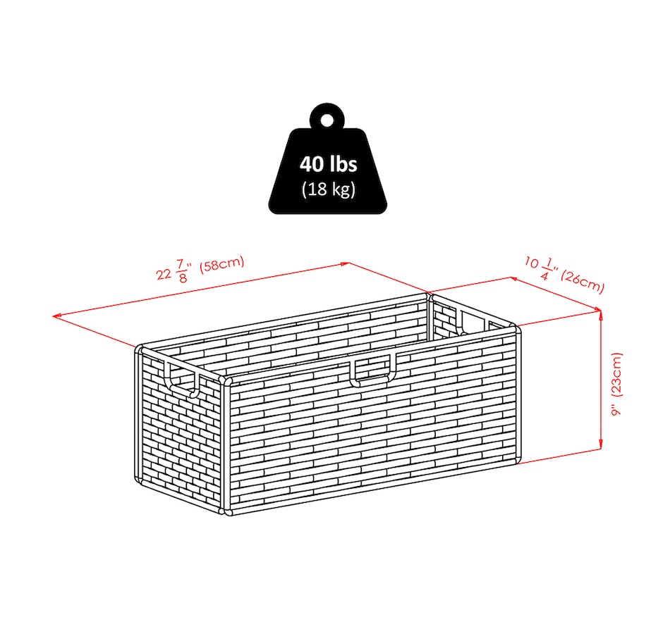• Large basket size: 22.83"W x 10.24"D x 9.06"H (open); 32.48"W x 9.85"D x 1.97"H (folded)