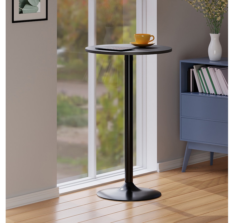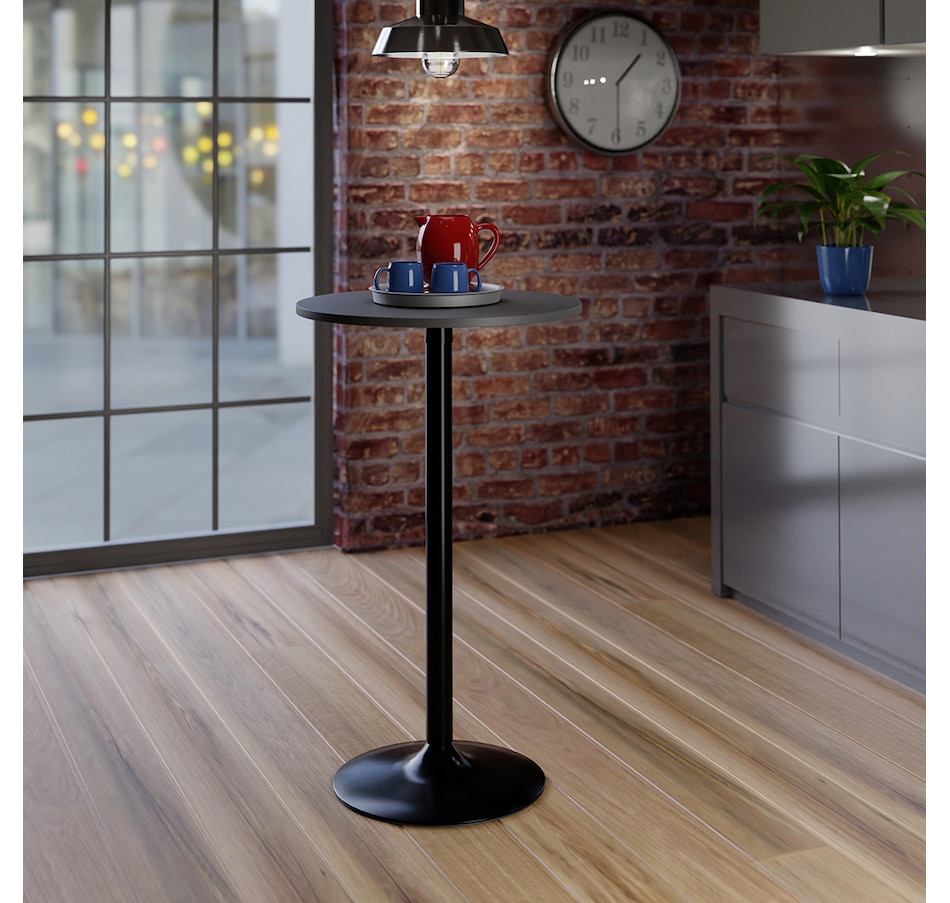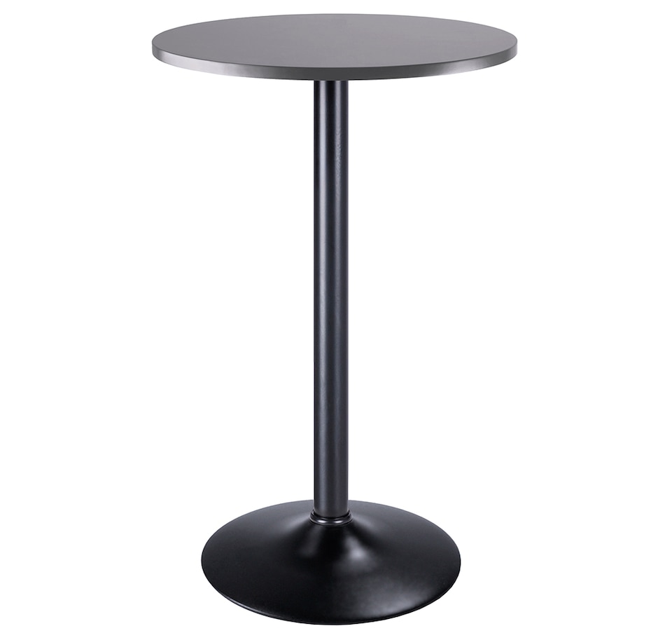 The Winsome wood Tarah pub table will bring a touch of casual café dining to your kitchen, den, basement or screened-in porch. Compact yet sophisticated style of this set makes it a great addition to any area, and it's ideal for light dining or social gatherings. The tabletop's 23.6" circumference is well-sized for dinner for two or to hold snacks and drinks when guests arrive. It can also serve as a display table on which to place a lamp, your favourite plants, or collectibles. The tabletop is made of sturdy, easy-to-clean composite wood in a contemporary gray finish, and the matte black metal base completes the modern styling. At just under 40” tall, this pub table can be pair with a set of bar stools, like the Winsome wood Tarah adjustable swivel stools (each sold separately). It is conveniently packed and shipped in one box, minimal assembly is required, and all the hardware necessary is included in package. Replacement part request can be submitted directly to the manufacturer within 60 days from date of purchase.