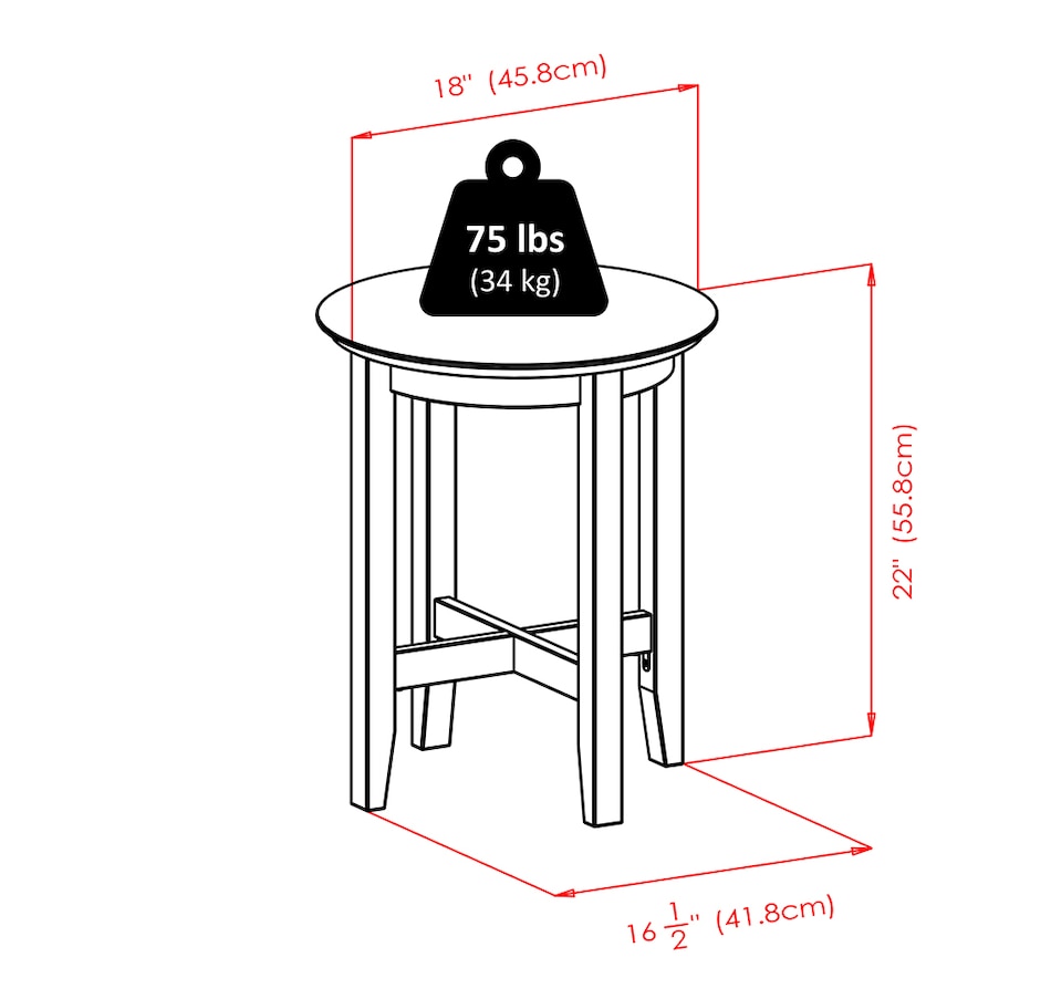 Add extra table space to a living room, den or bedroom with this beautiful and stylish Winsome wood Toby round accent table. Constructed of sturdy solid wood, the 18” diameter table is a perfect addition for many areas of your home. This small, round accent piece coordinates with both modern and traditional decor and will hold a lamp, picture frames, or small knick-knacks. Finished in a rich espresso, the shaker style legs give this table a simple yet elegance that will enrich any room. The x-cross stretcher under the tabletop is a feature that was added to this collection for extra support, all while keeping the clean and classic style of the design. For larger beds, sofas and/or rooms, try adding one accent table on each end (each sold separately). Finish off your living area with the coffee table from the Winsome Toby collection for a more unified space (each sold separately). It is conveniently packed and shipped in one box and ready to assemble. Replacement parts can be requested directly to the manufacturer within 60 days from date of purchase.