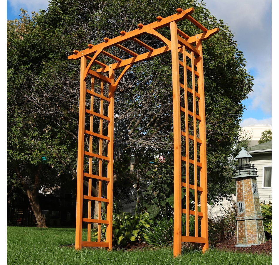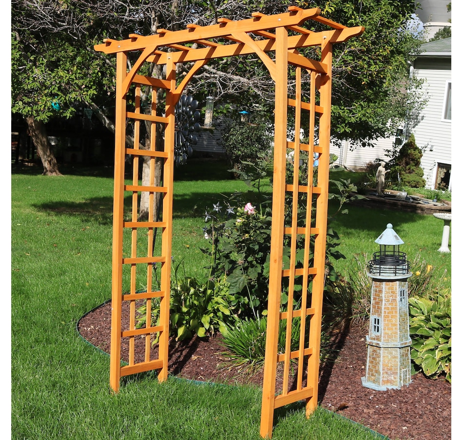 - Wood garden arch adds classic outdoor charm